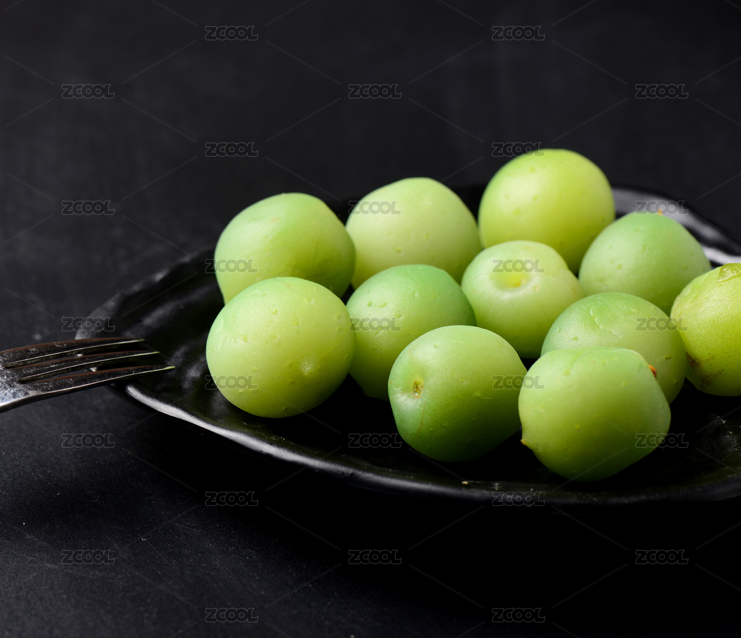 黑底上放着一堆新鲜青梅