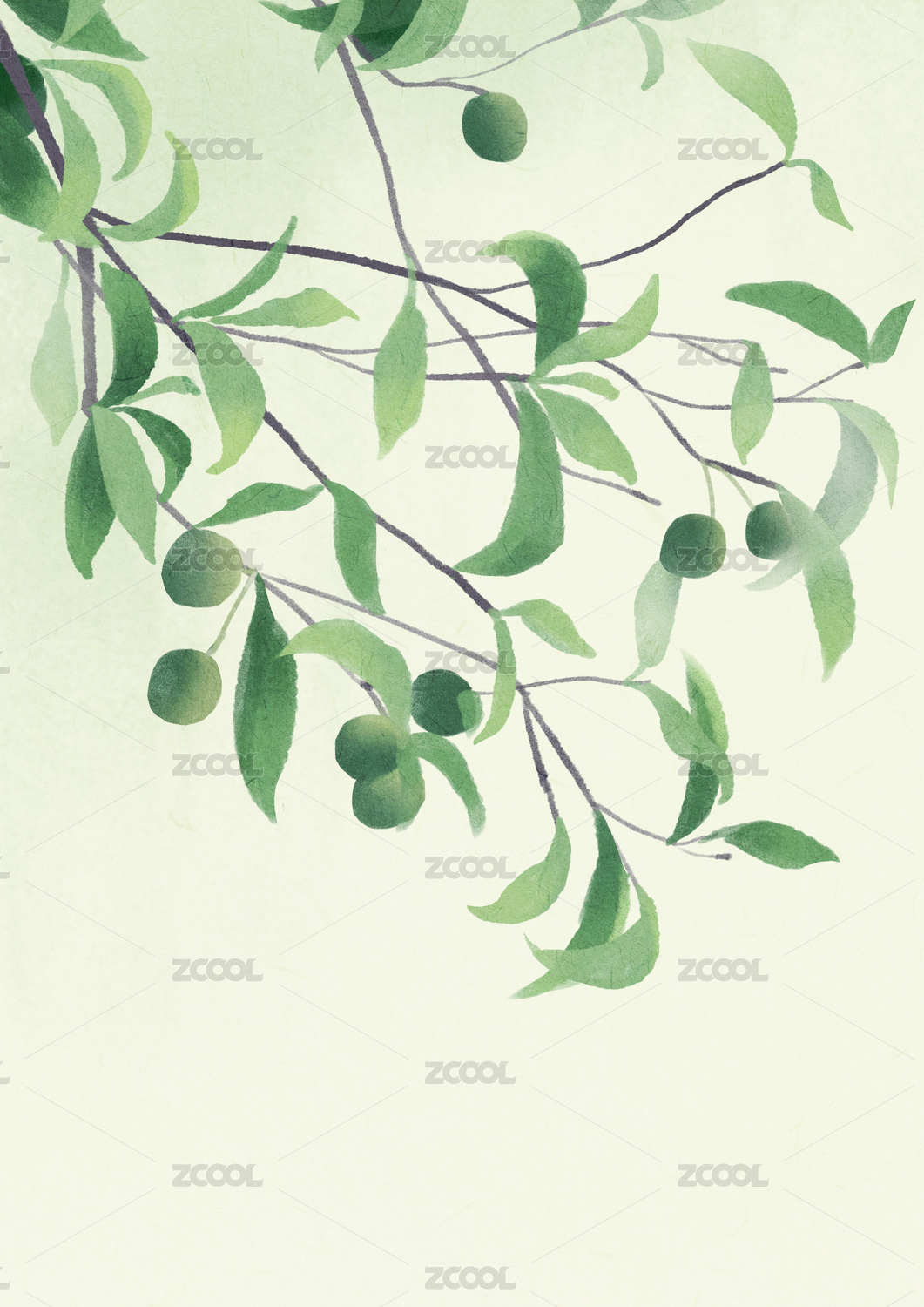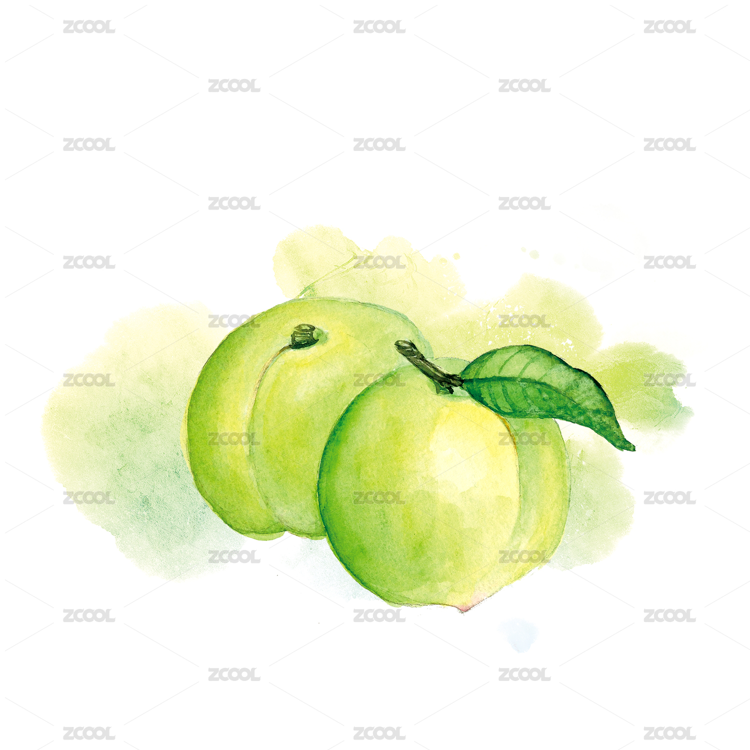 水彩手绘青梅水果插画