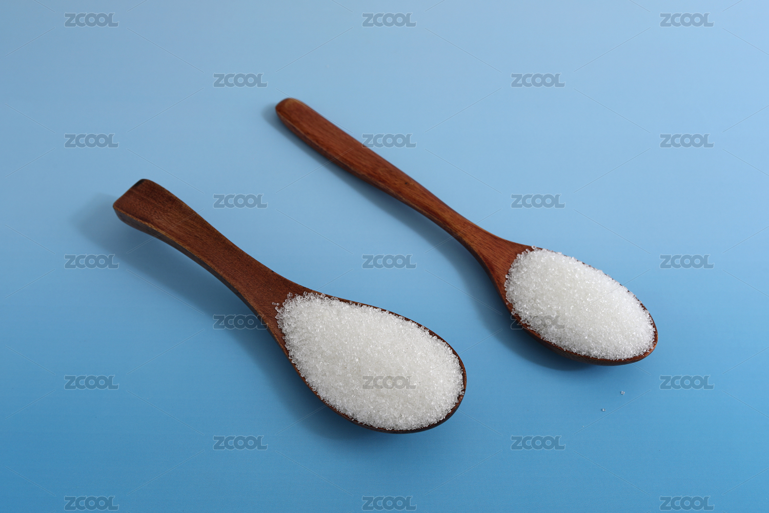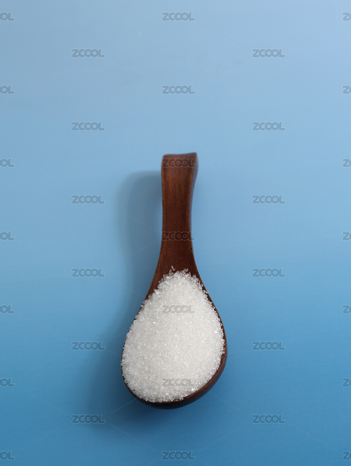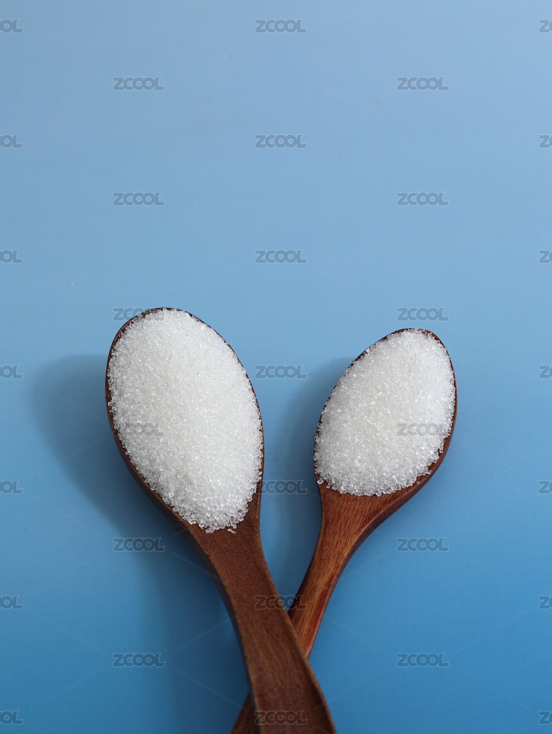 蓝色桌面上摆放着的调料美食白糖白砂糖