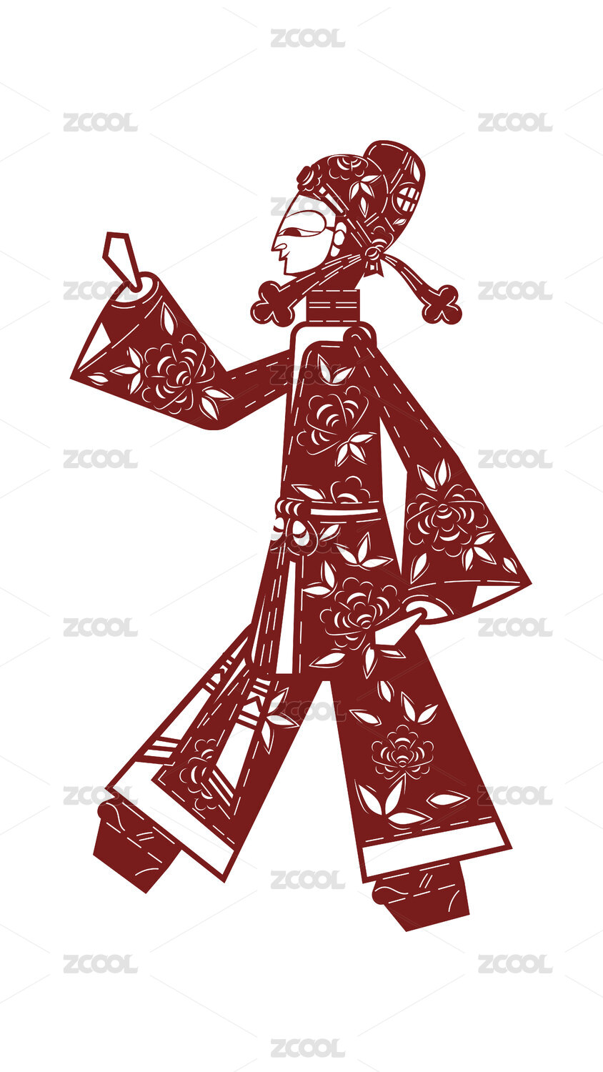 唐山皮影人物旦角青衣剪纸