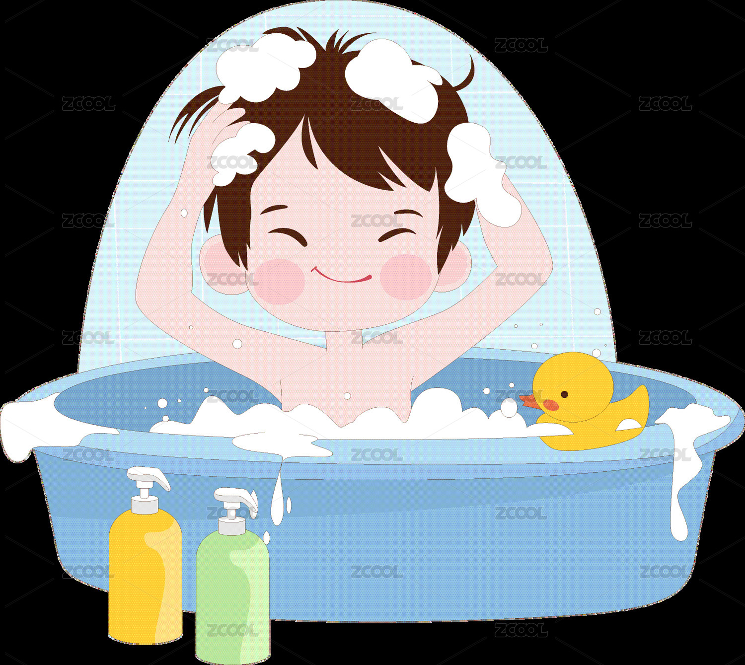 卡通风男孩洗澡泡泡浴养成良好生活习惯插画