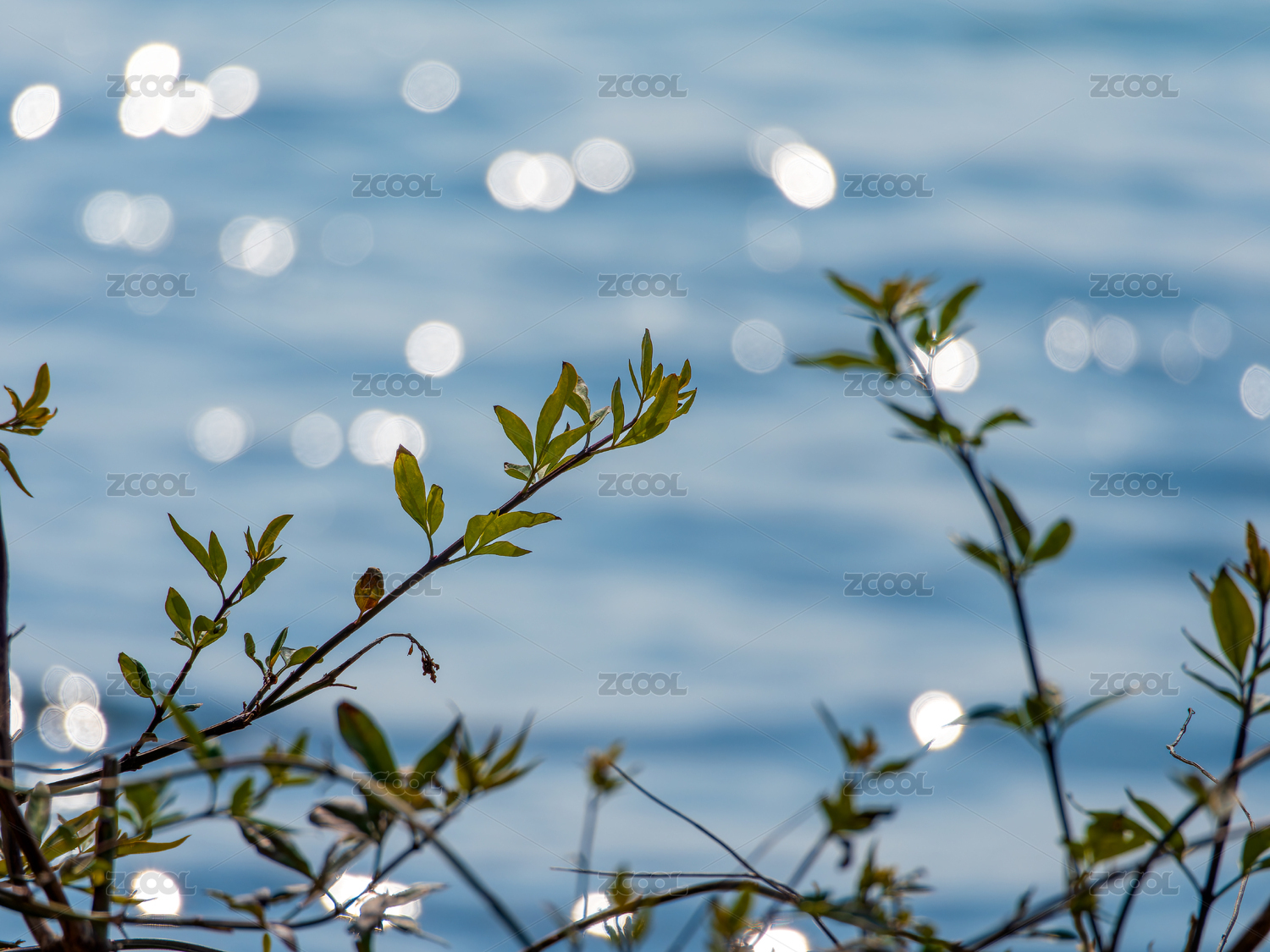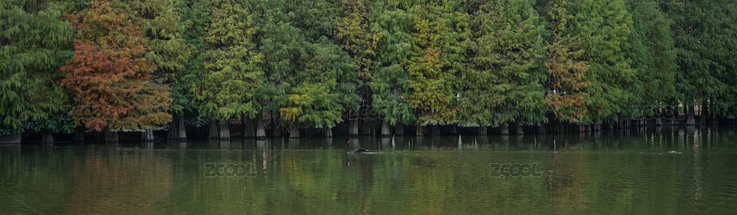 杭州曲院风荷水边红枫枝桠横生的秋日景致