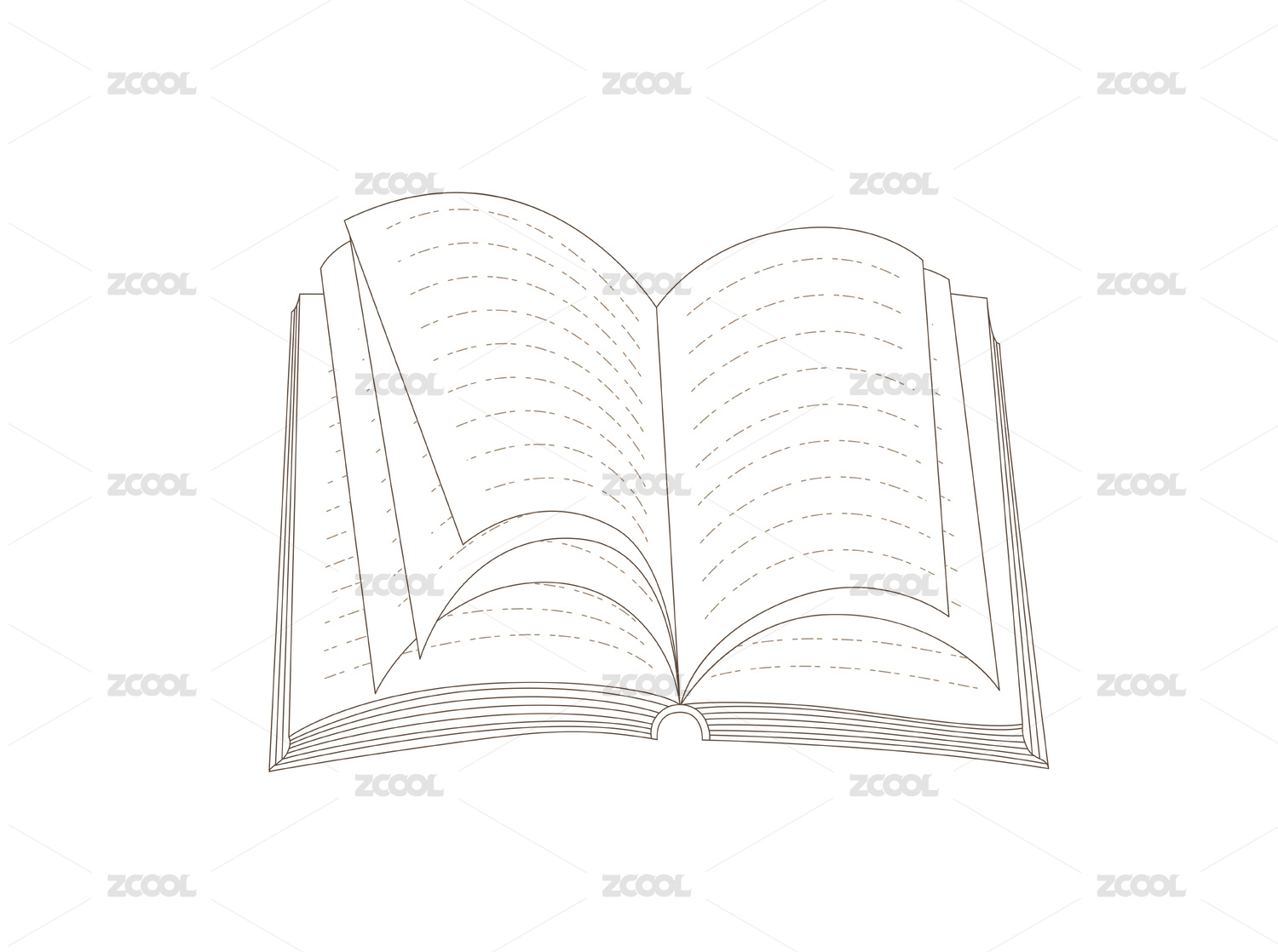 翻开的书籍黑白线条元素图案