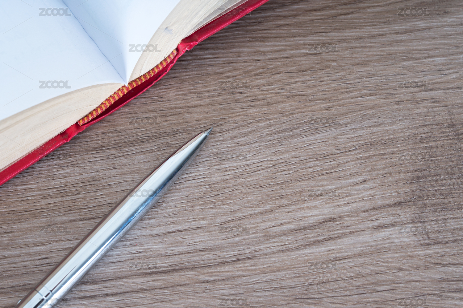 桌子上一本翻开的书和一支笔