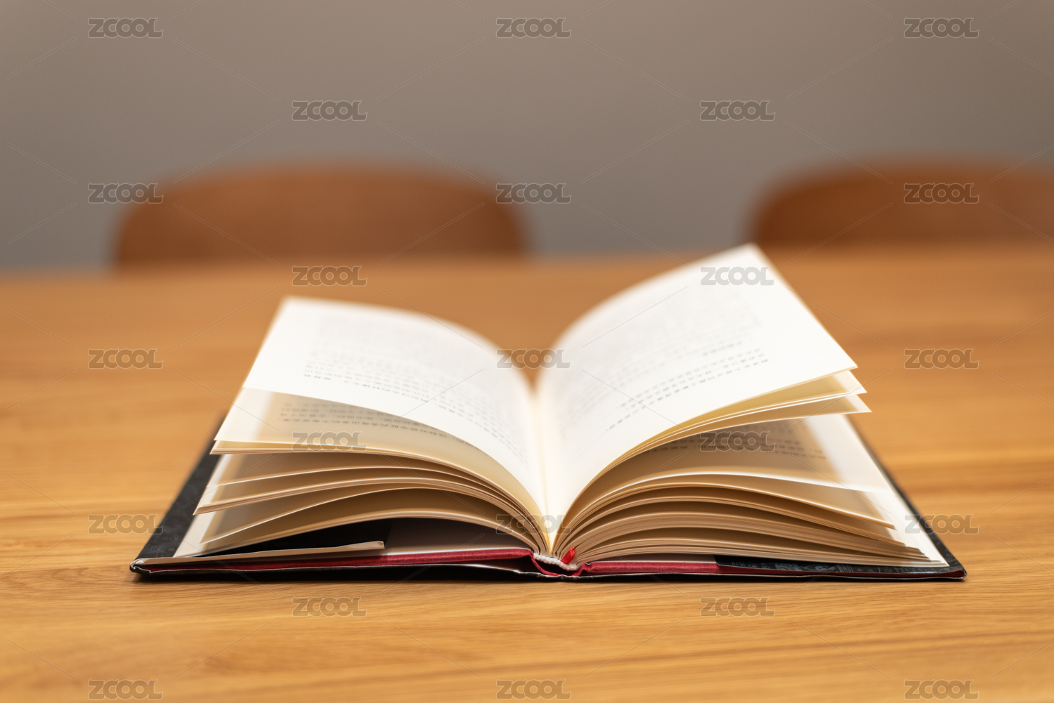 木桌上的一本打开的书