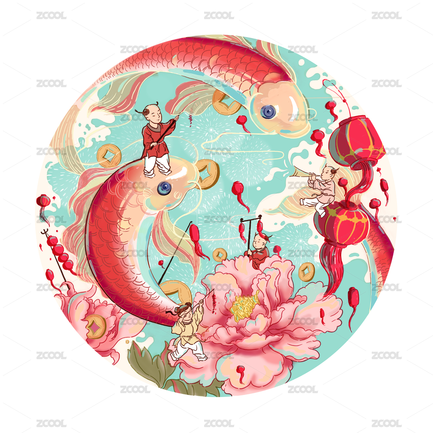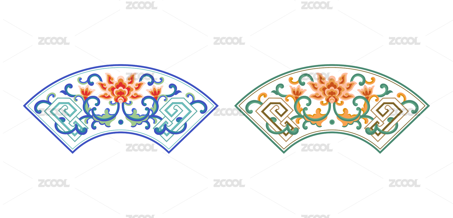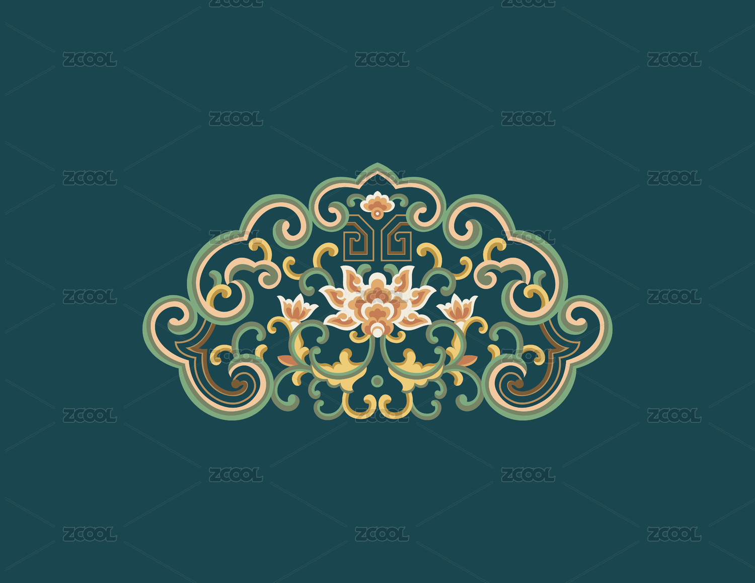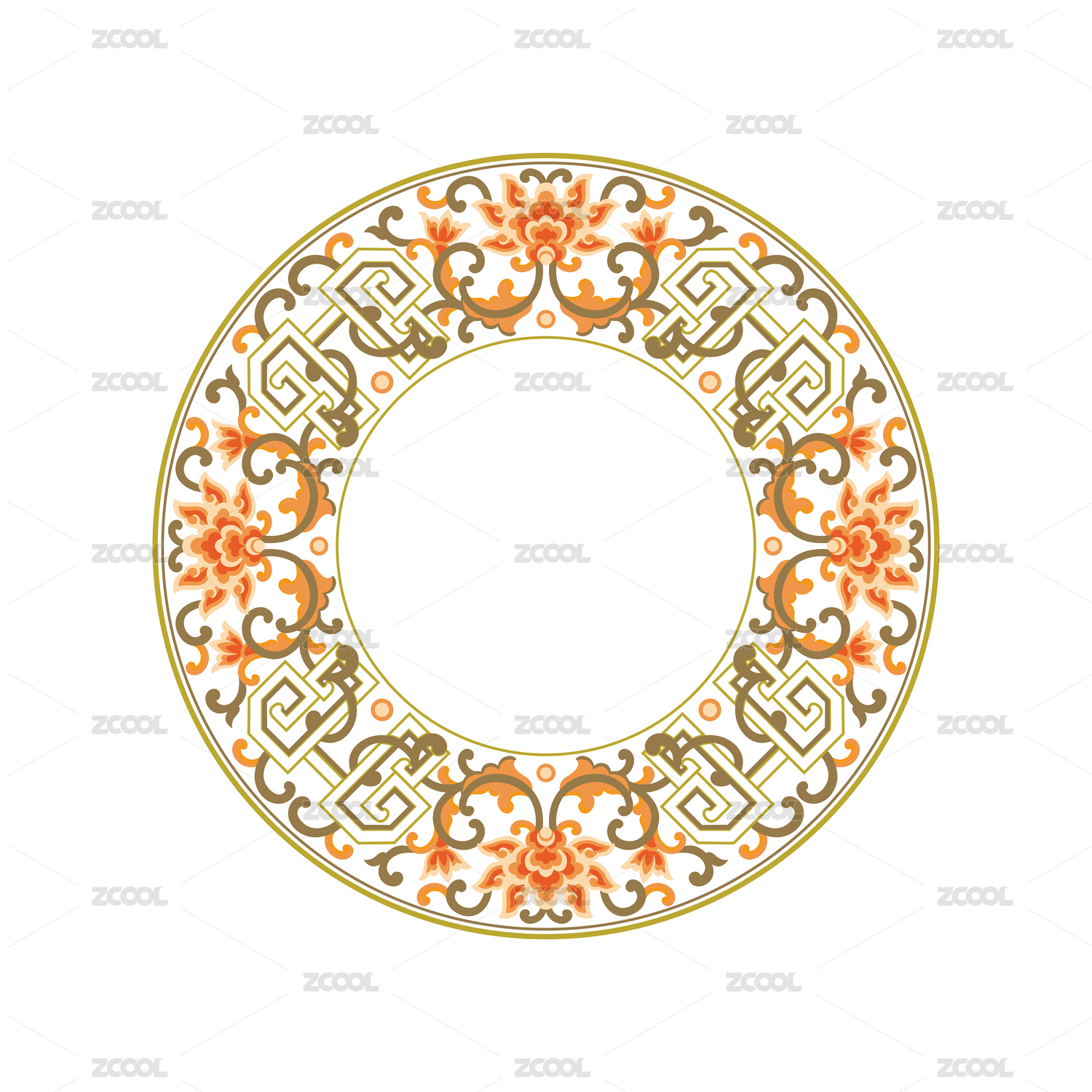 颜色鲜艳的传统花边花纹装饰图案,白色背景