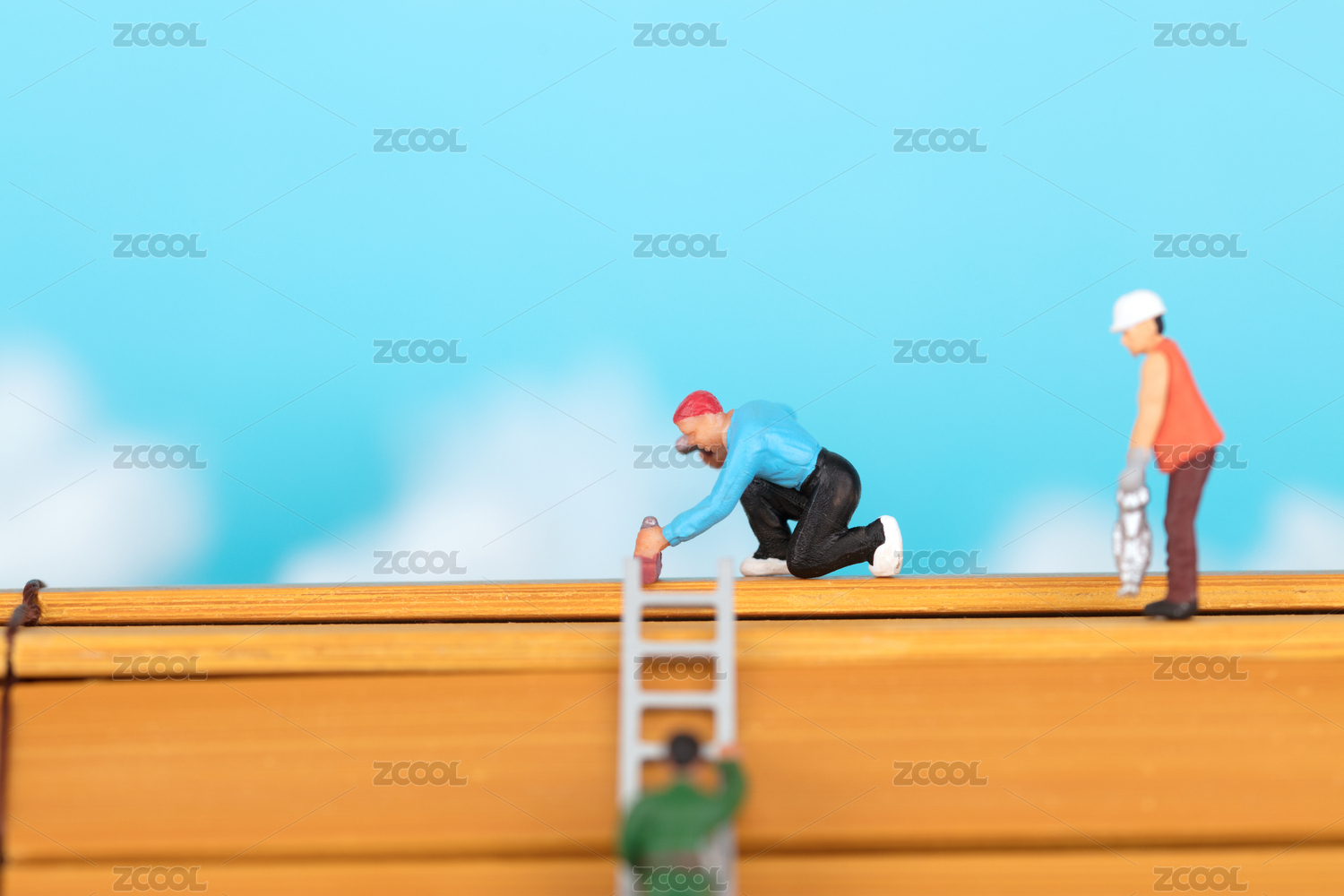 工人人偶在修理硬币围绕里的房子