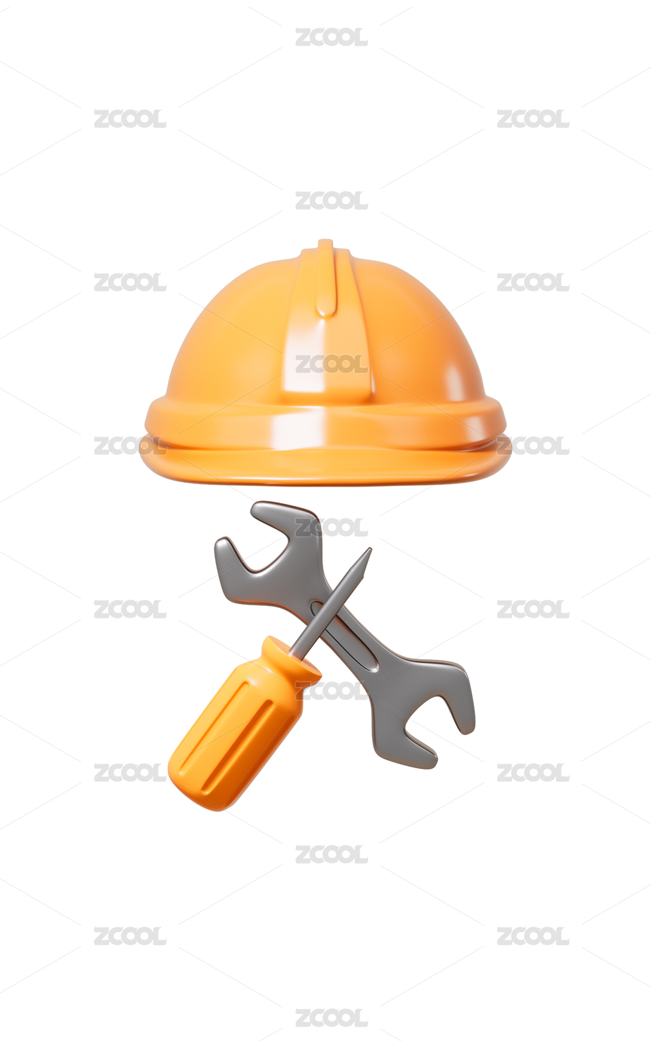 卡通安全头盔和修理工具3D渲染