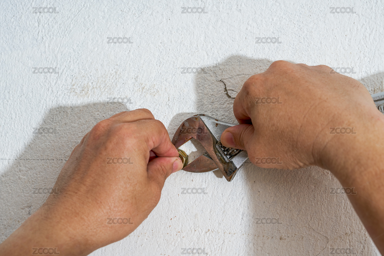 一位工人在用扳手扭墙上的螺丝钉