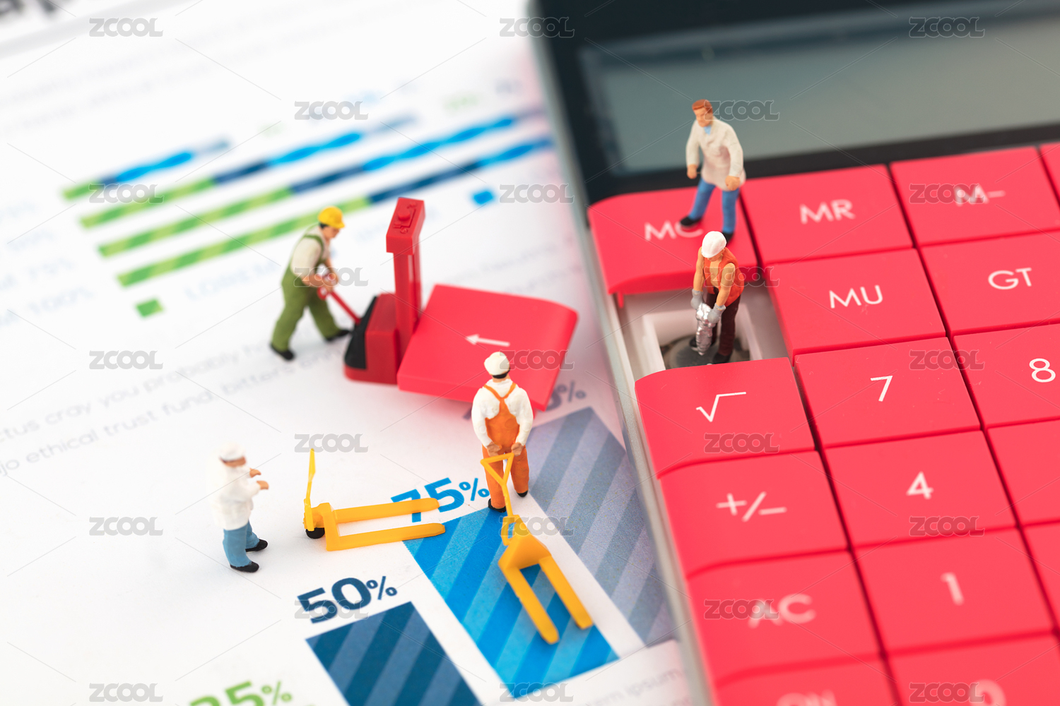 微缩创意修理计算器的工人