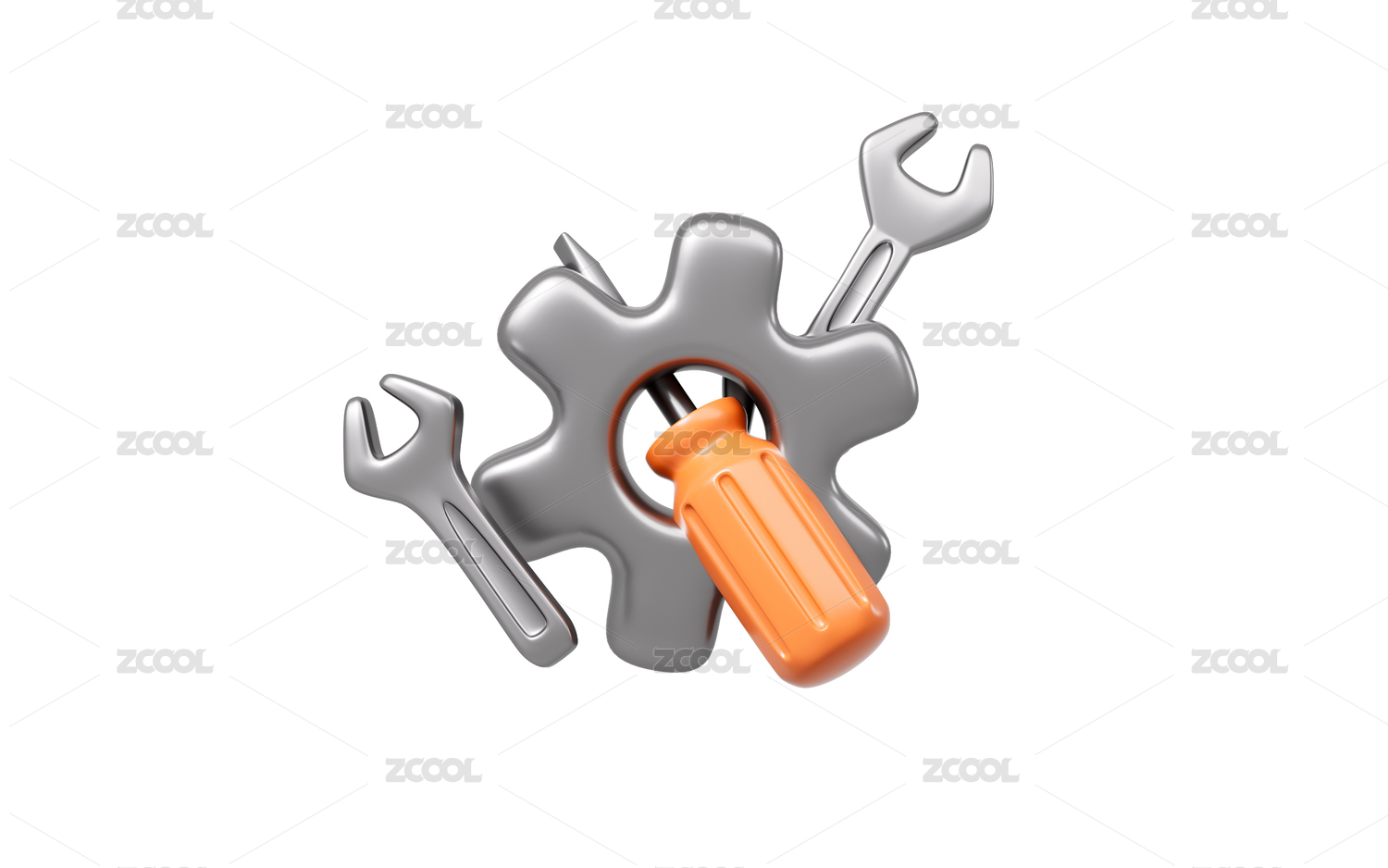 卡通锤子和扳手修理工具3D渲染