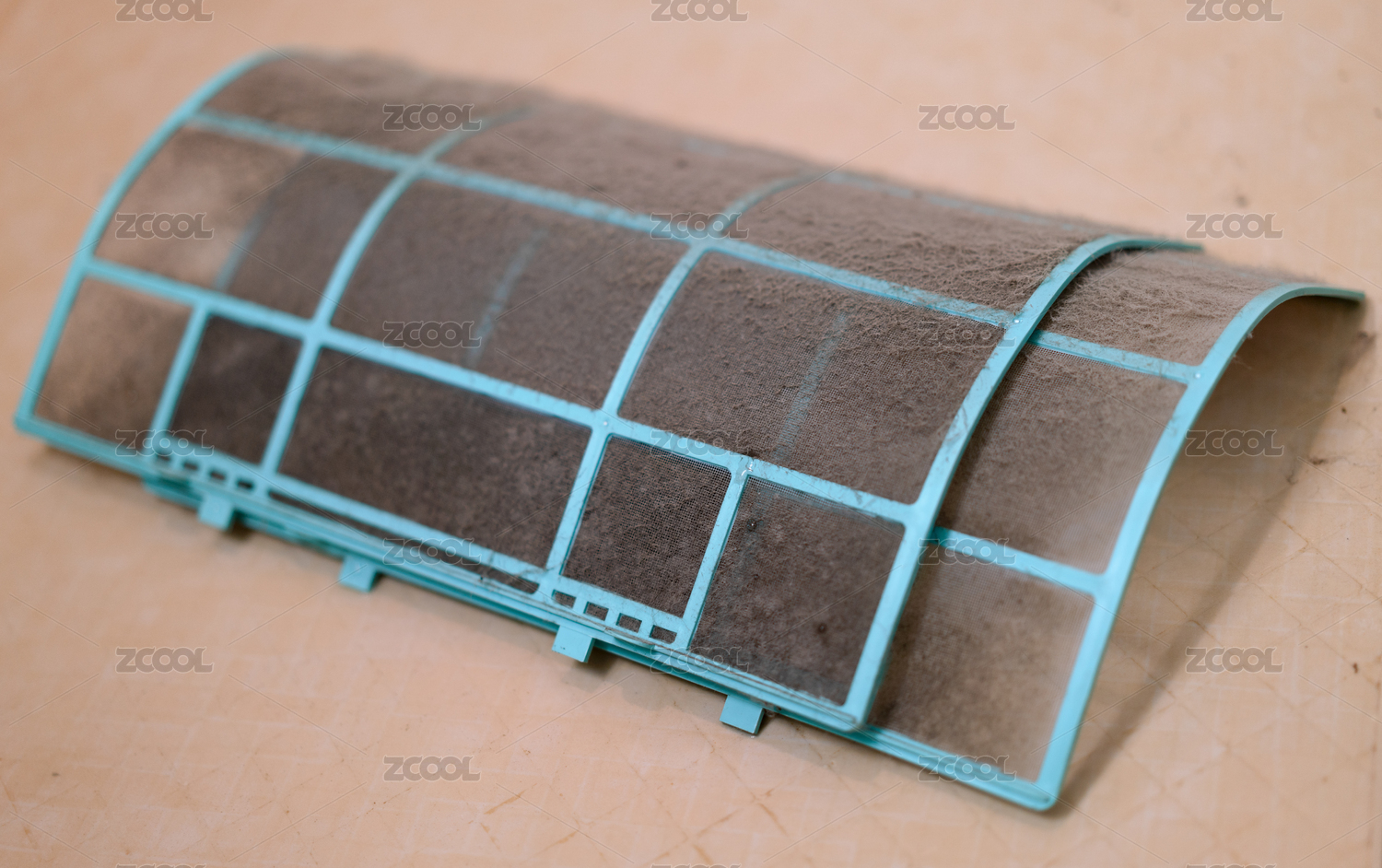 堆积着厚厚灰尘和污垢的空调滤网