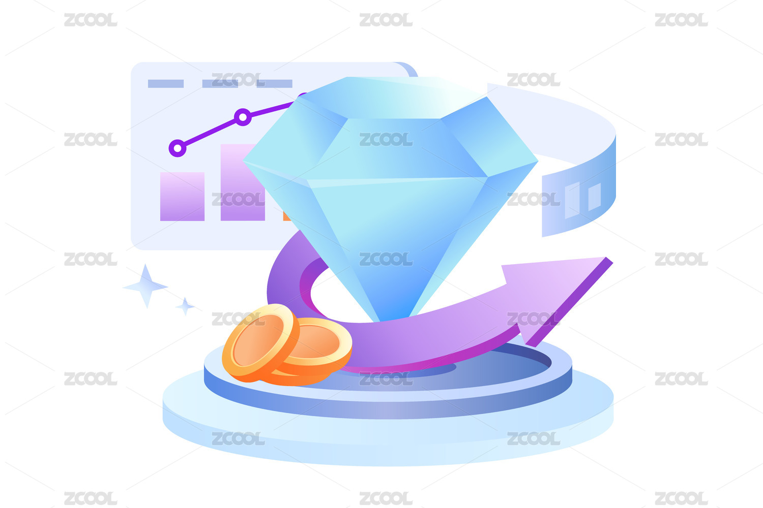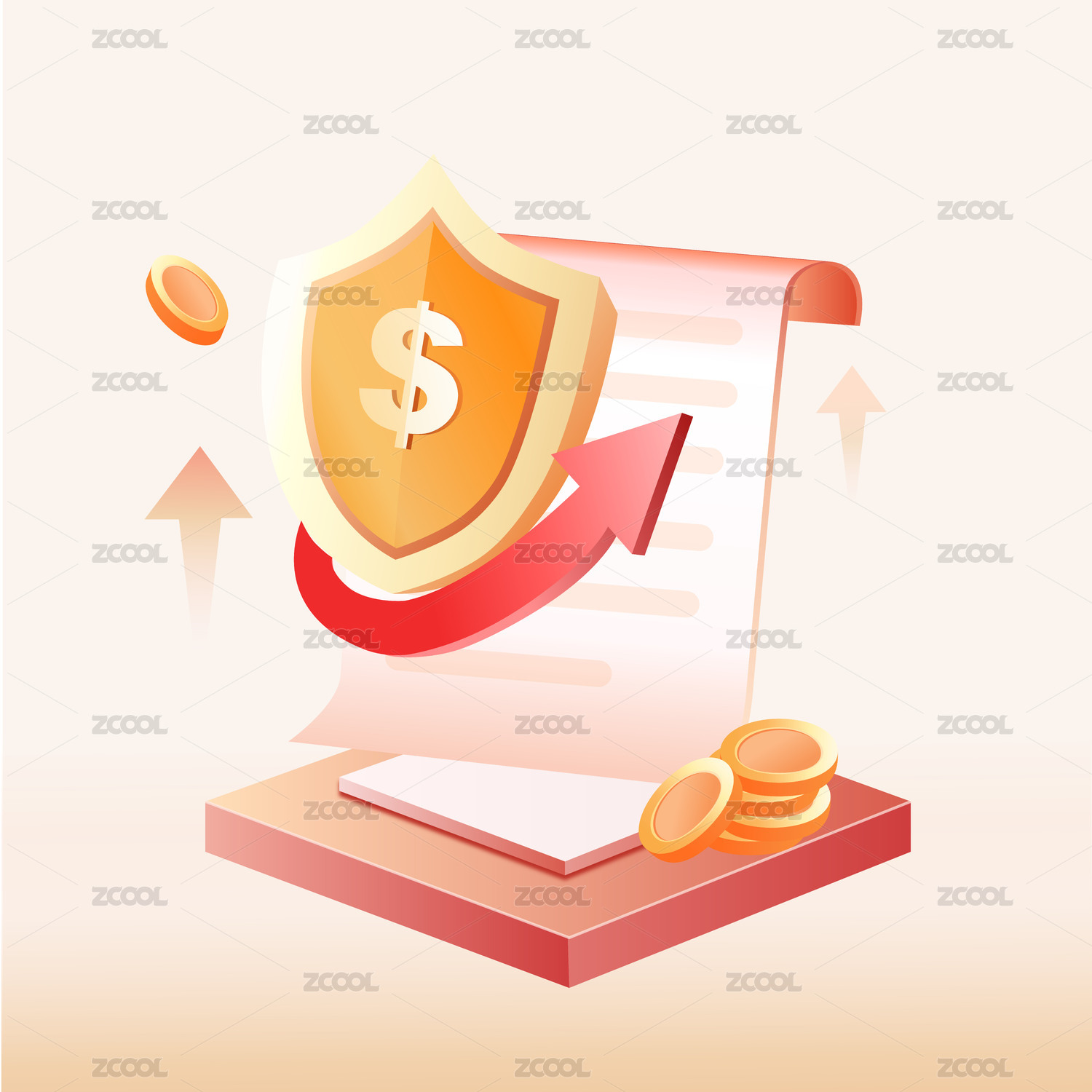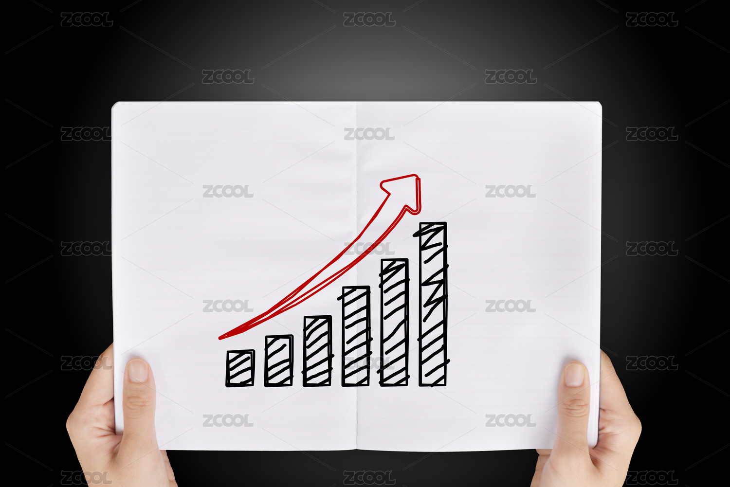 白色背景下简约简单的立体的柱状图图表报表和向上增长的箭头