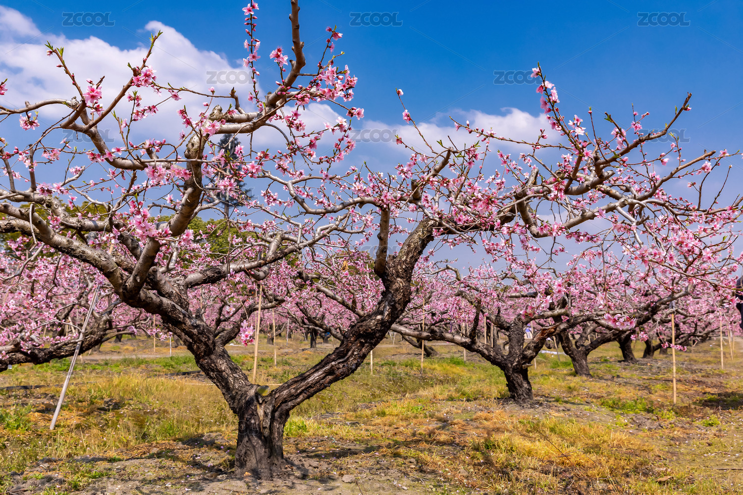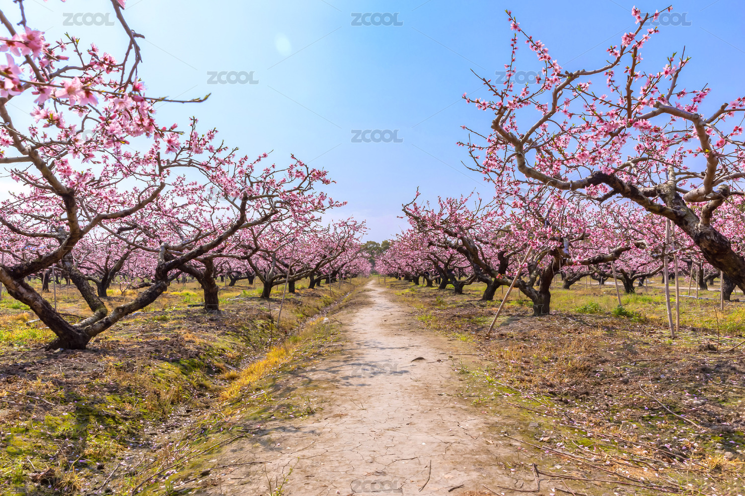 春天桃园里盛开的桃花风景