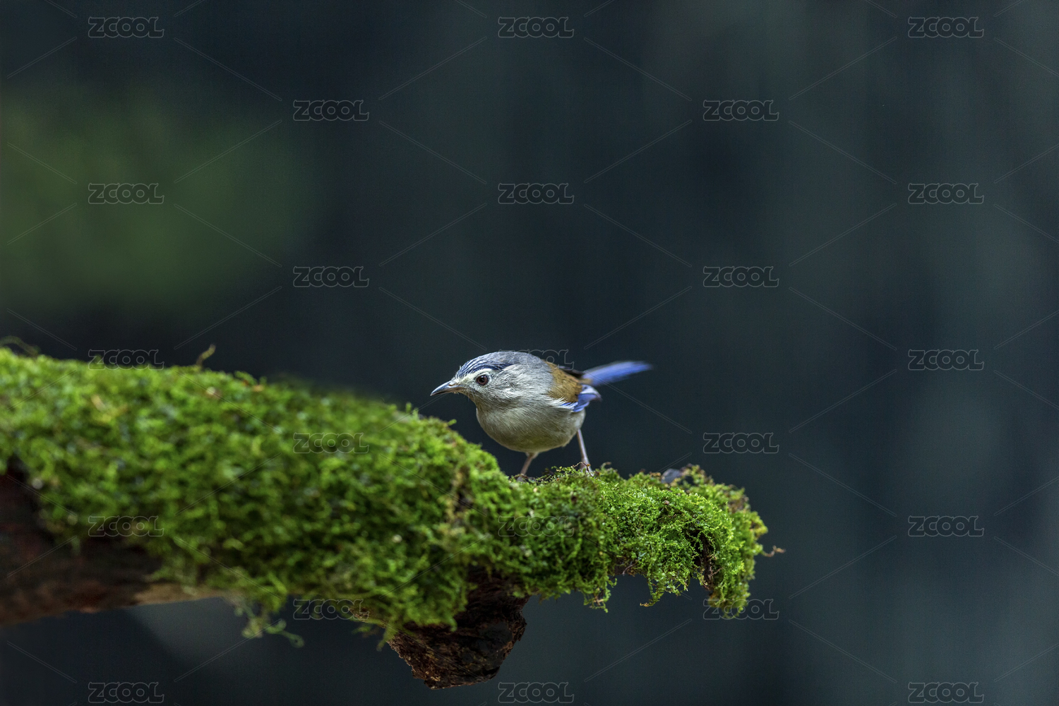 夏日里一只单独活动觅食的蓝翅希鹛鸟