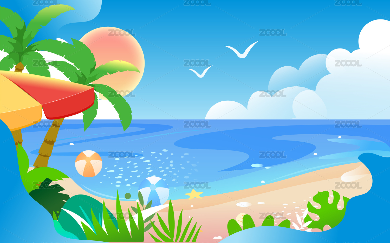 3D卡通多彩的夏日海滩