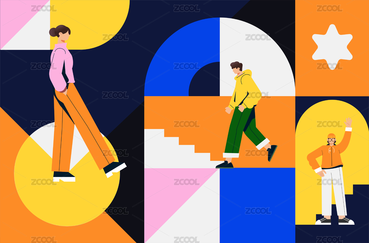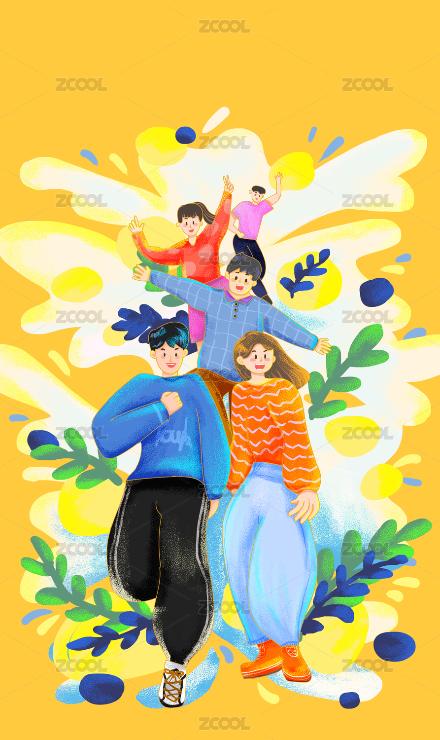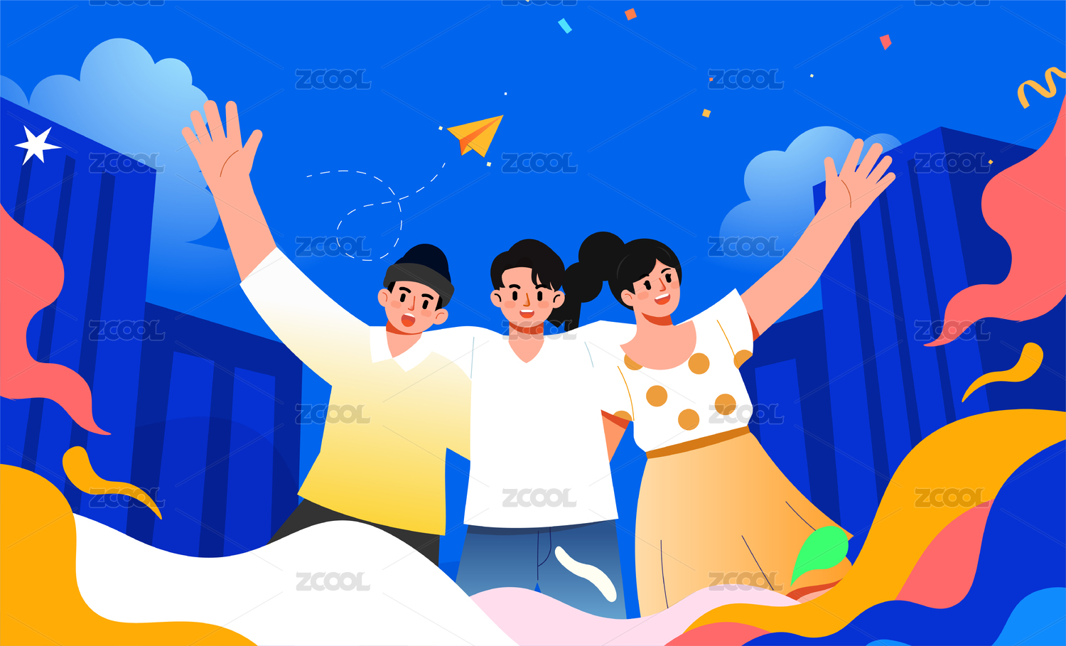 握拳头宣誓的各行业青年或学生矢量人物插画
