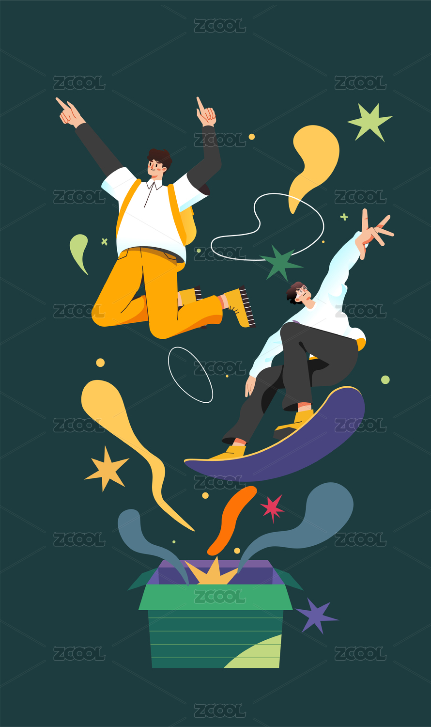 一个发光的星球静静地躺在河面上,背包青年仰望星空美景超现实插画背景海报