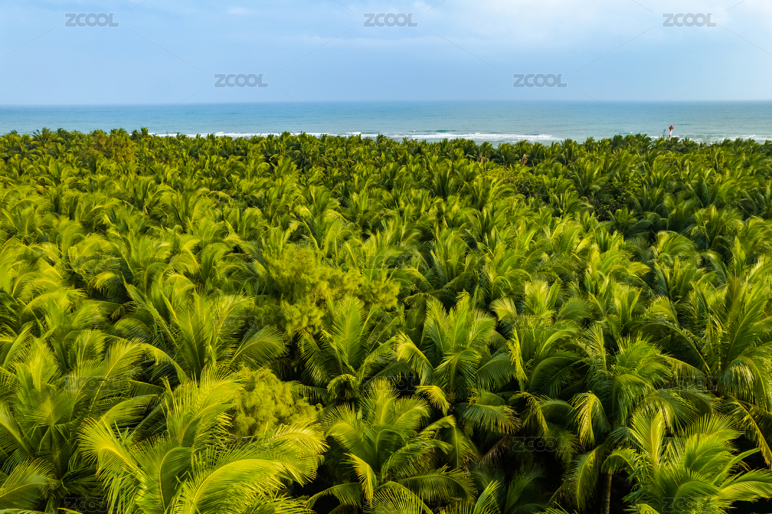 俯瞰海南文昌海边大片的椰树森林