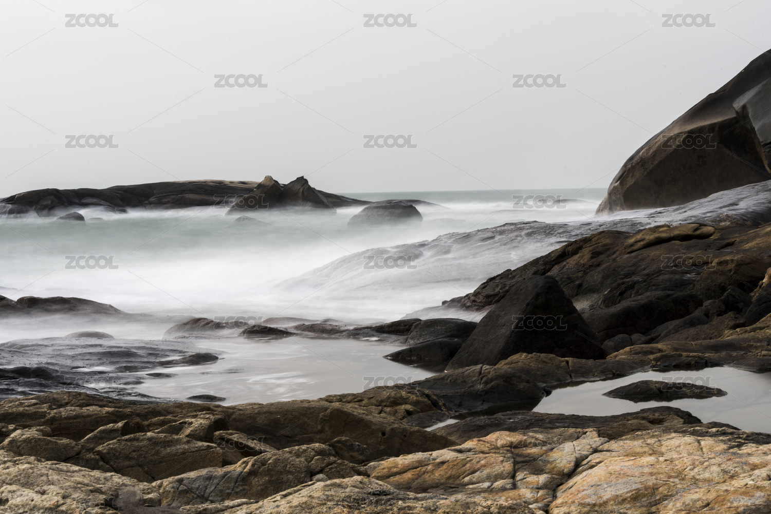 海南文昌石头公园海边的海浪和岸边的礁石