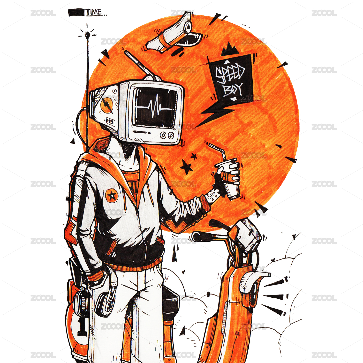 烟鬼海盗旗骷髅潮流服装印花TEE图