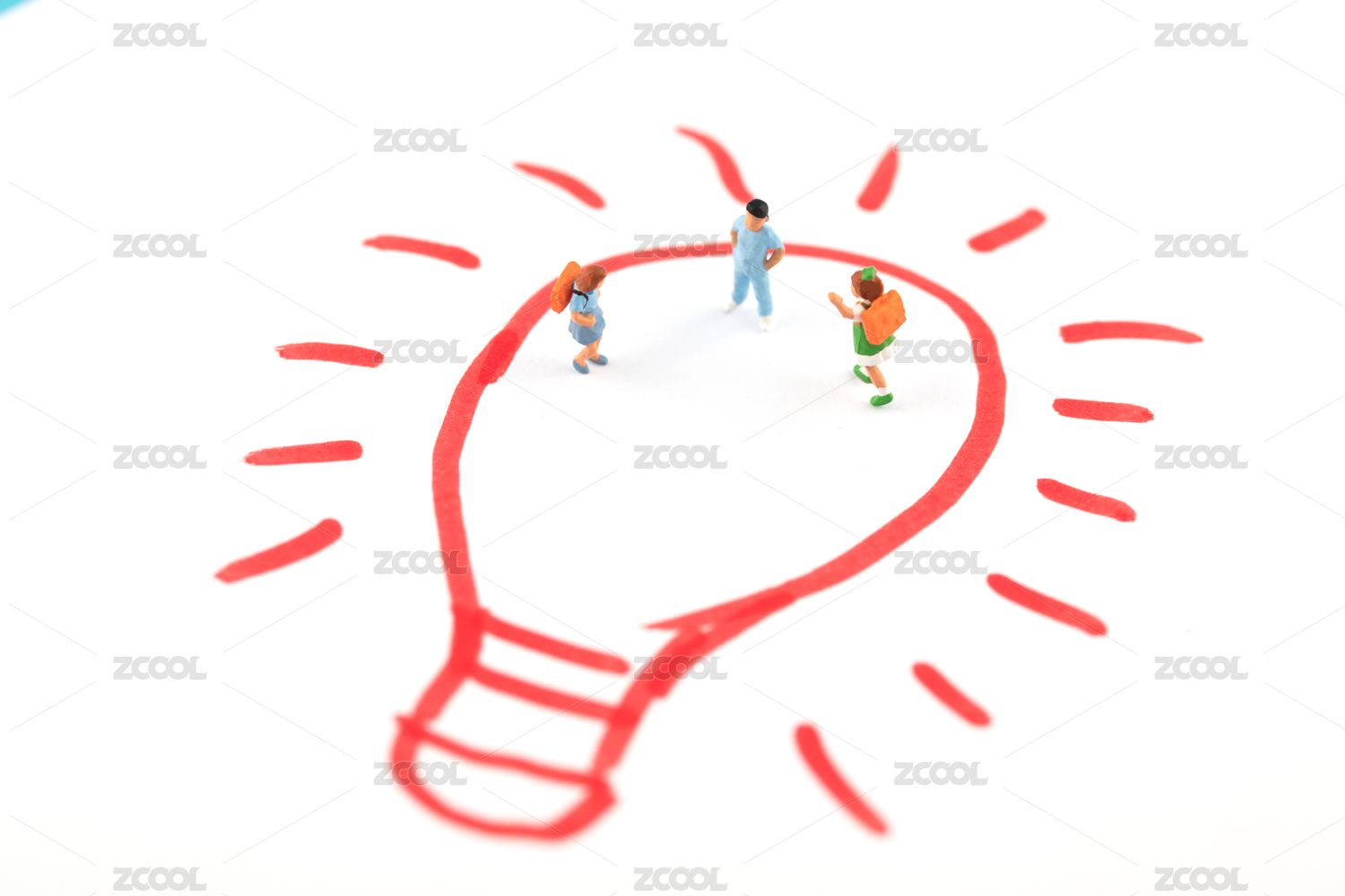 微缩创意电灯泡图形上的小学生