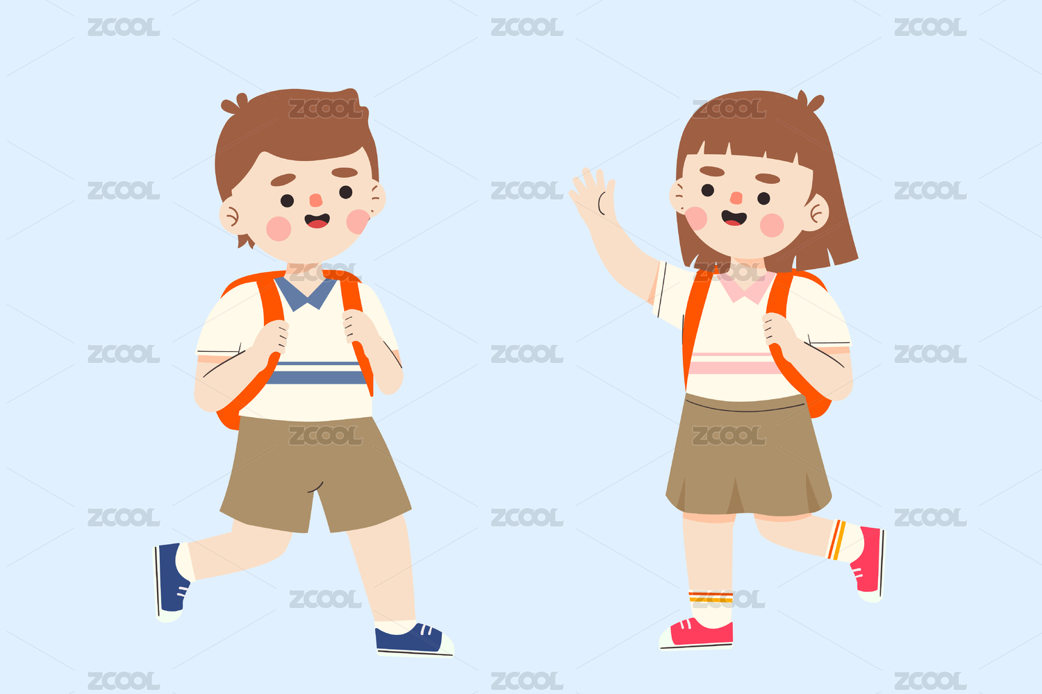 背着书包的小学生矢量插画