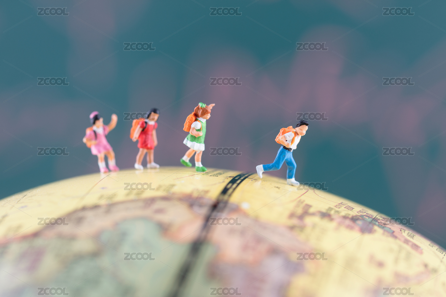 在地球仪上放学的小学生