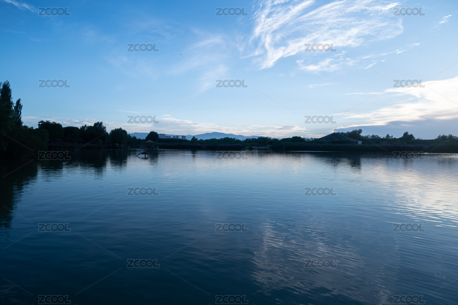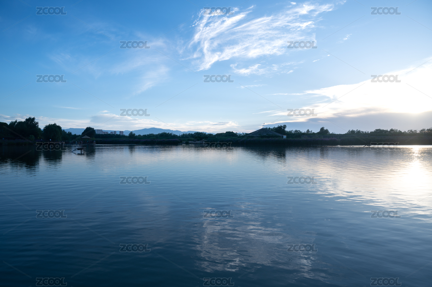 张掖国家湿地公园傍晚自然风光