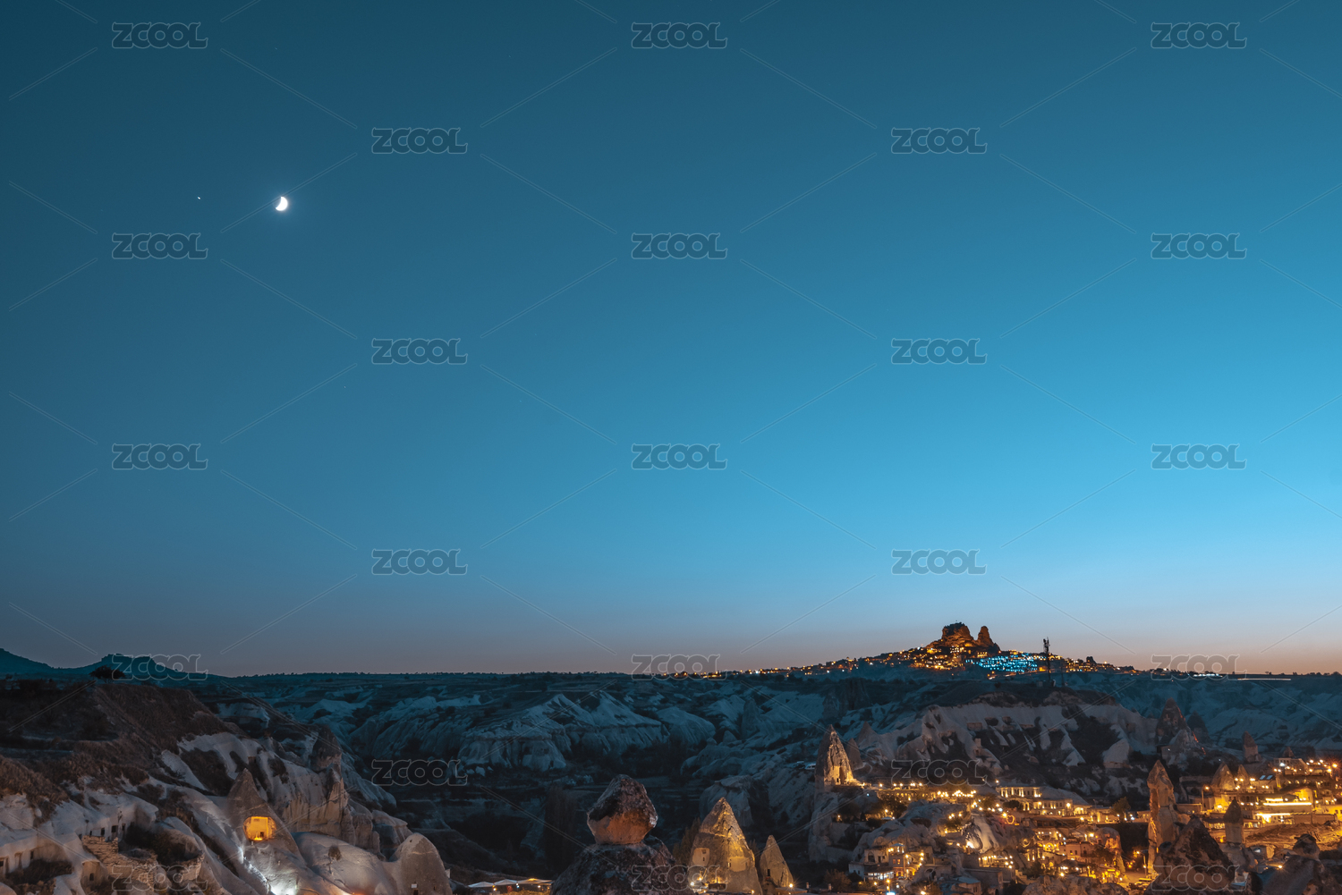 土耳其卡帕多奇亚格雷梅小镇夜景斯特特地貌