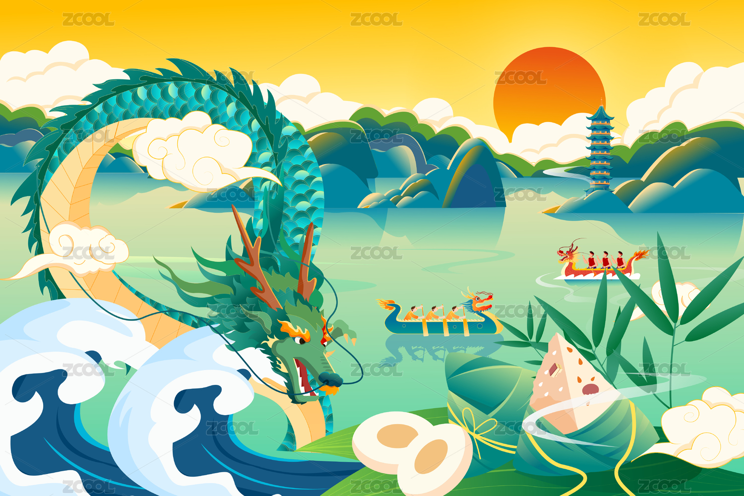 手绘端午插画
