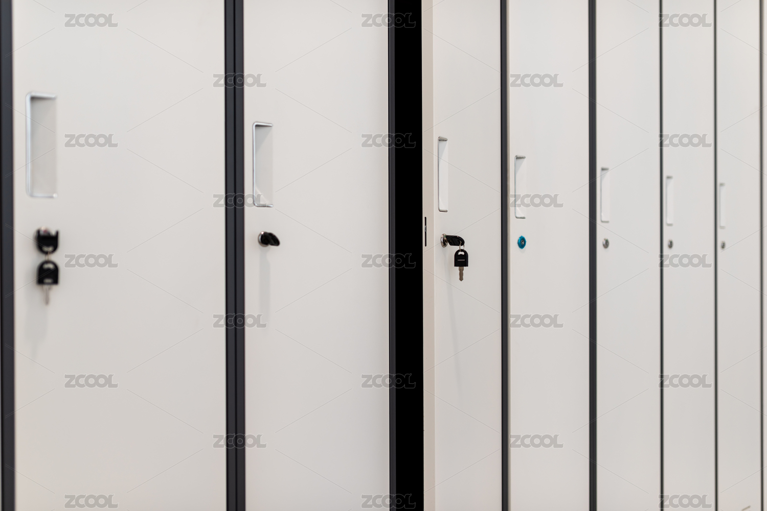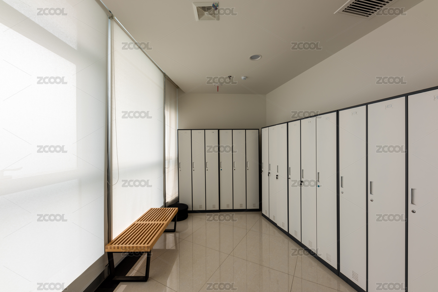 办公大楼内的更衣室白色更衣柜