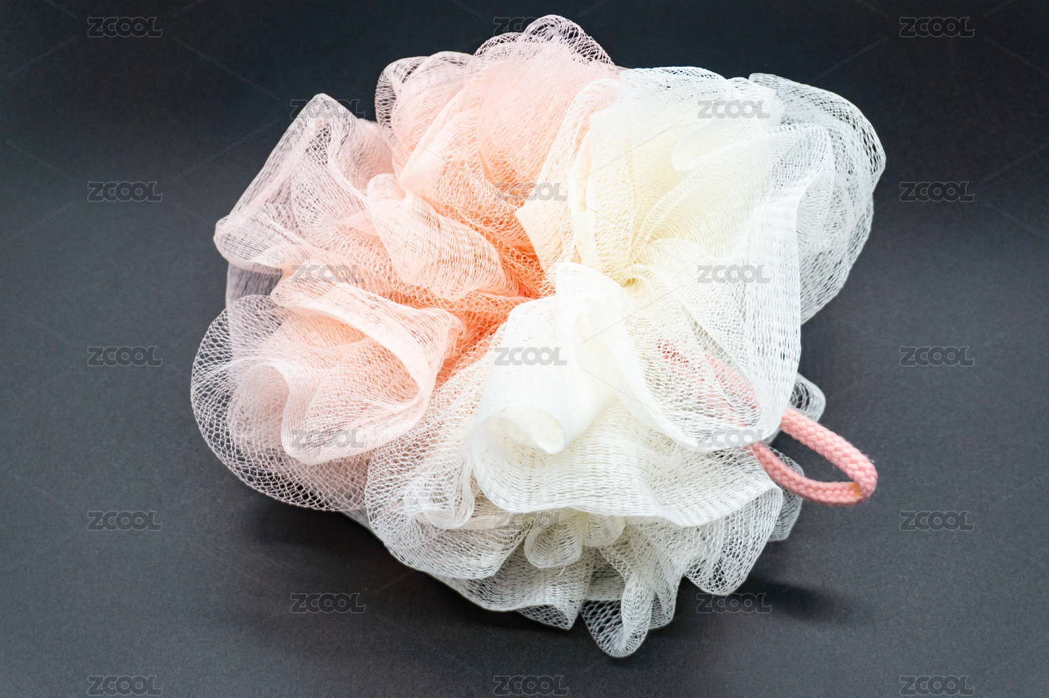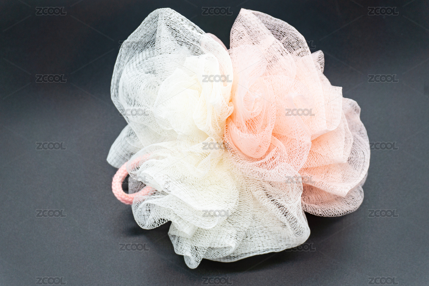 浴室的毛巾和浴球沐浴露个人护理背景素材