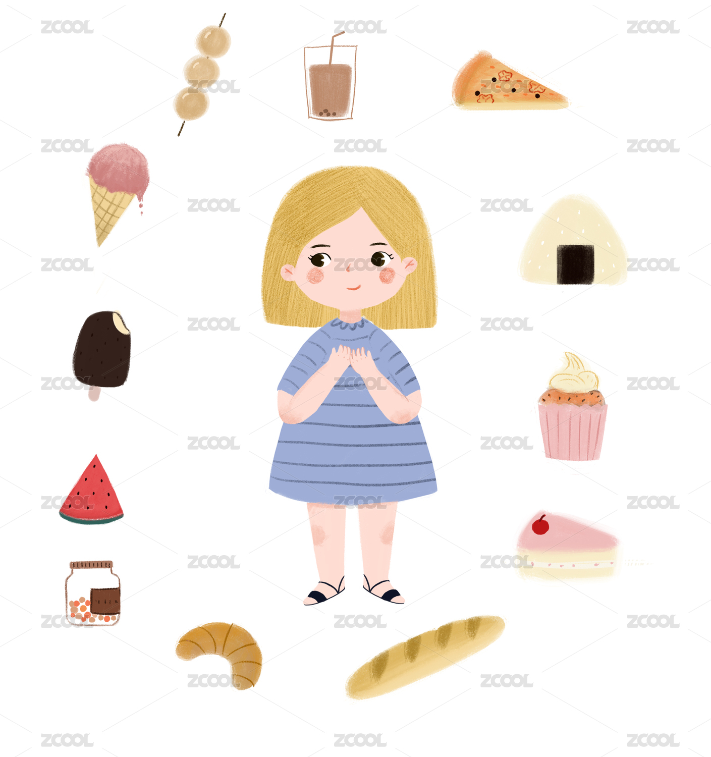 卡通人物表情包可爱女孩贴纸2:吃货篇