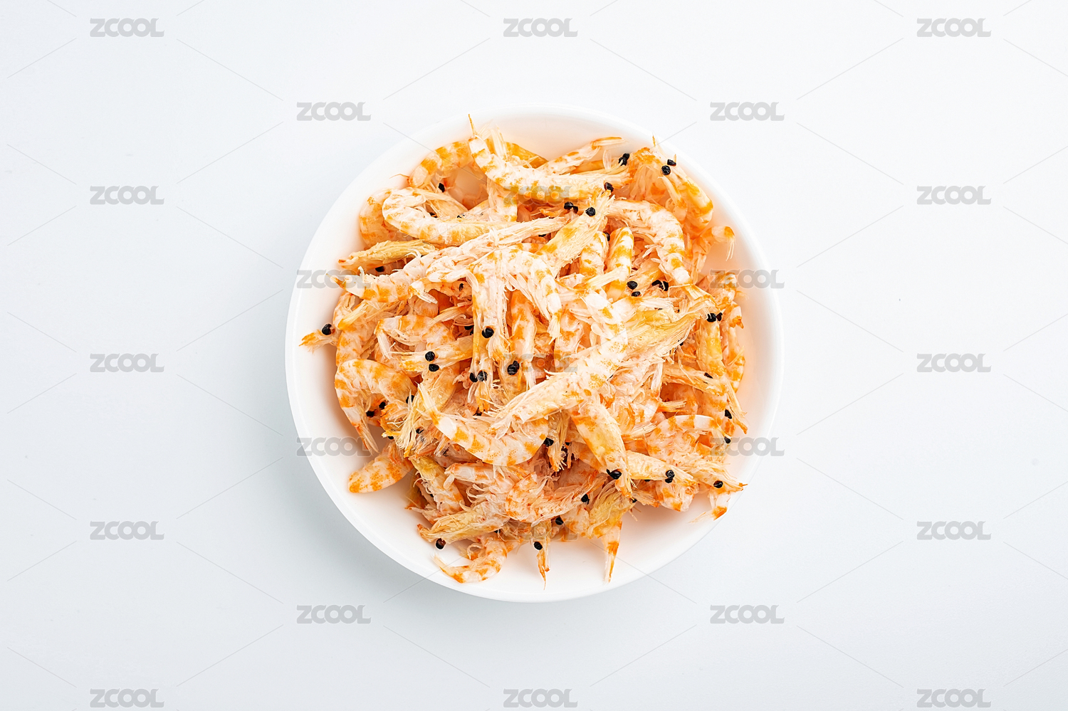 白背景上的海鲜干货一碟红虾皮