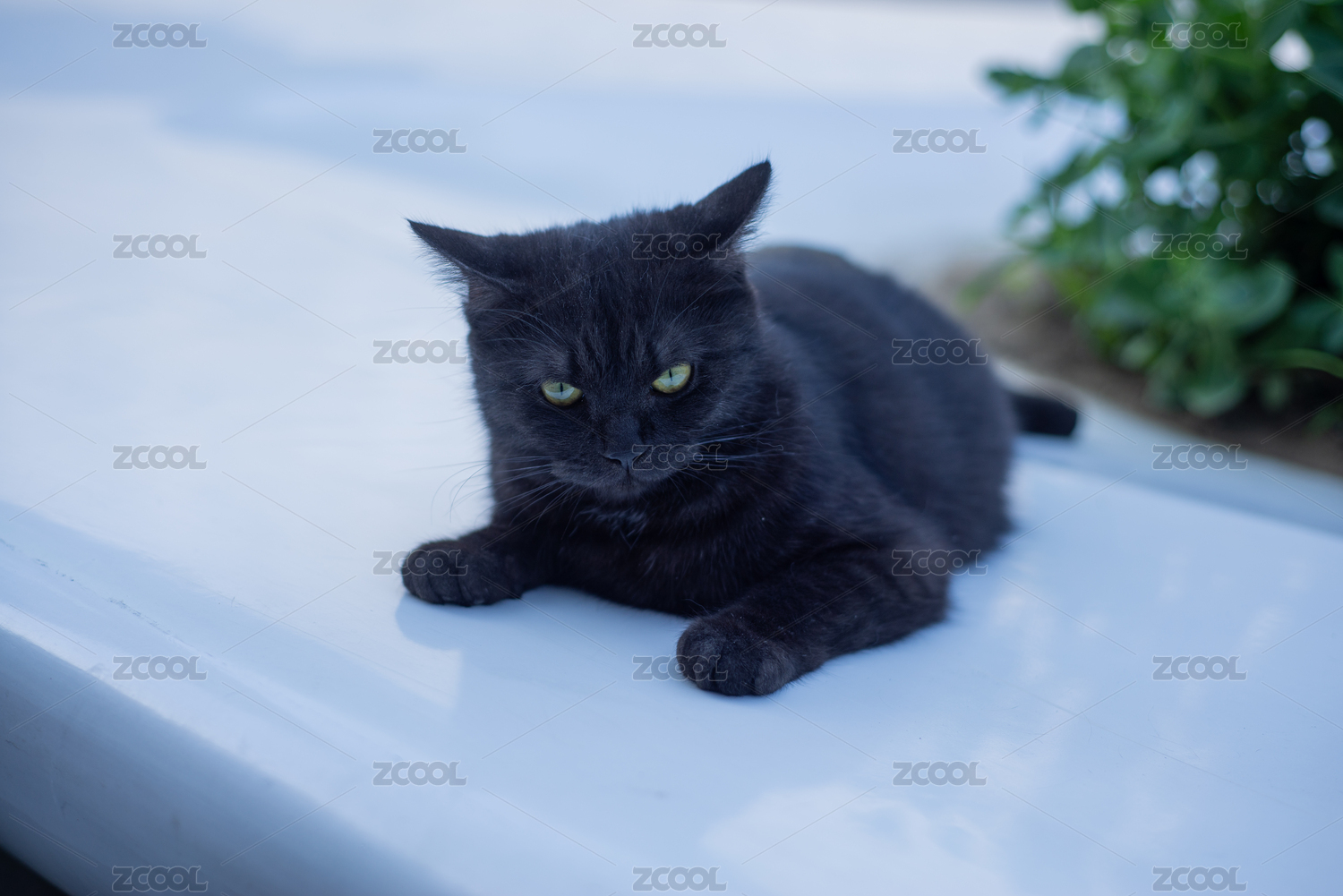春天柳树柳枝下小黑猫梦到一群鱼游过