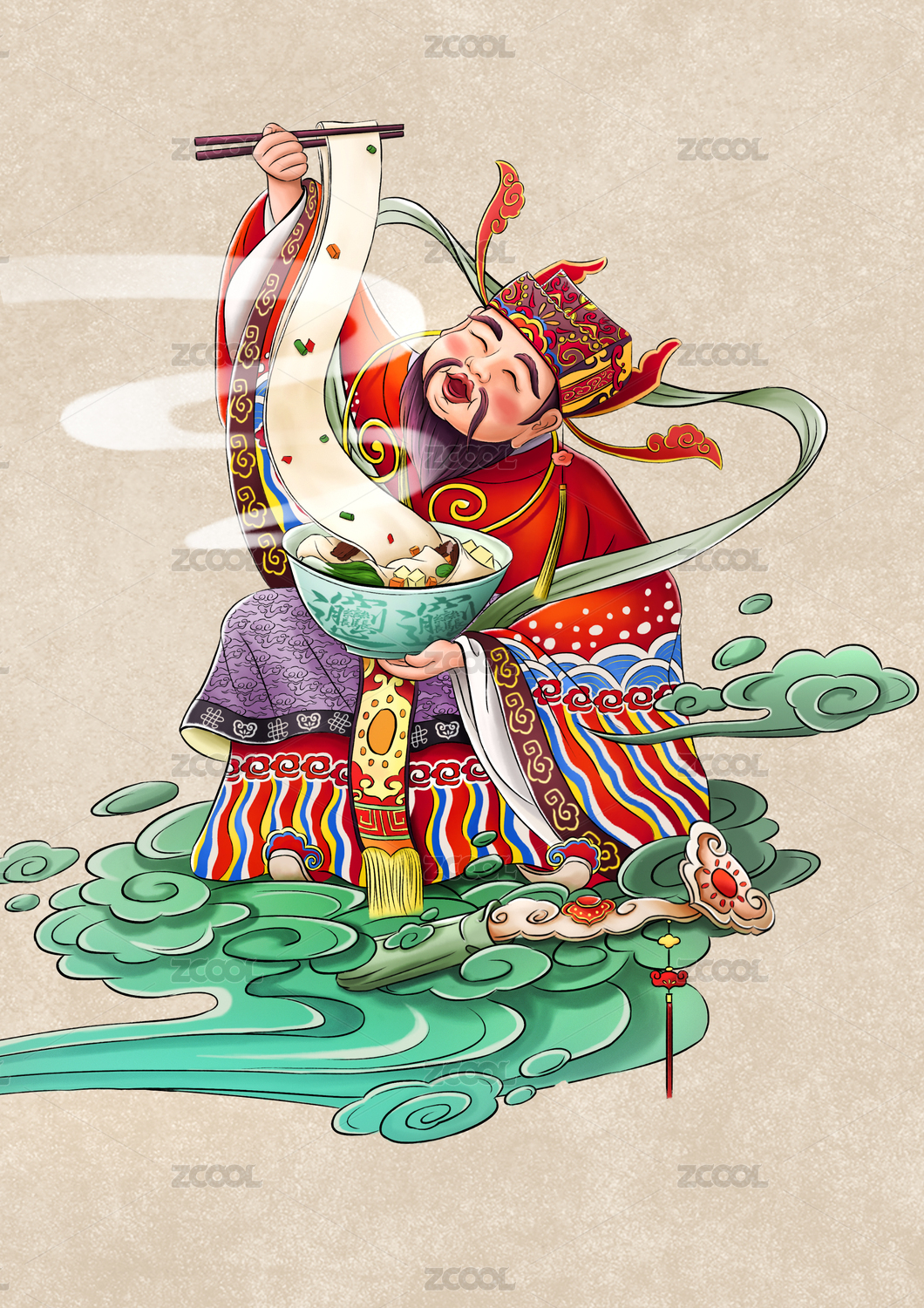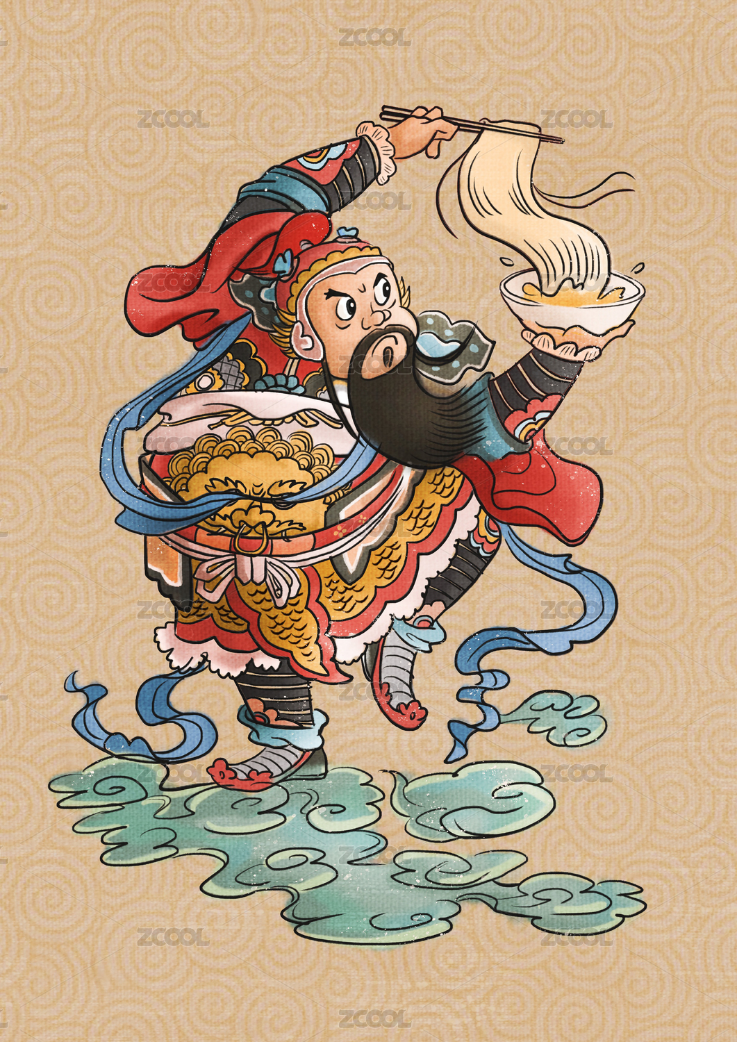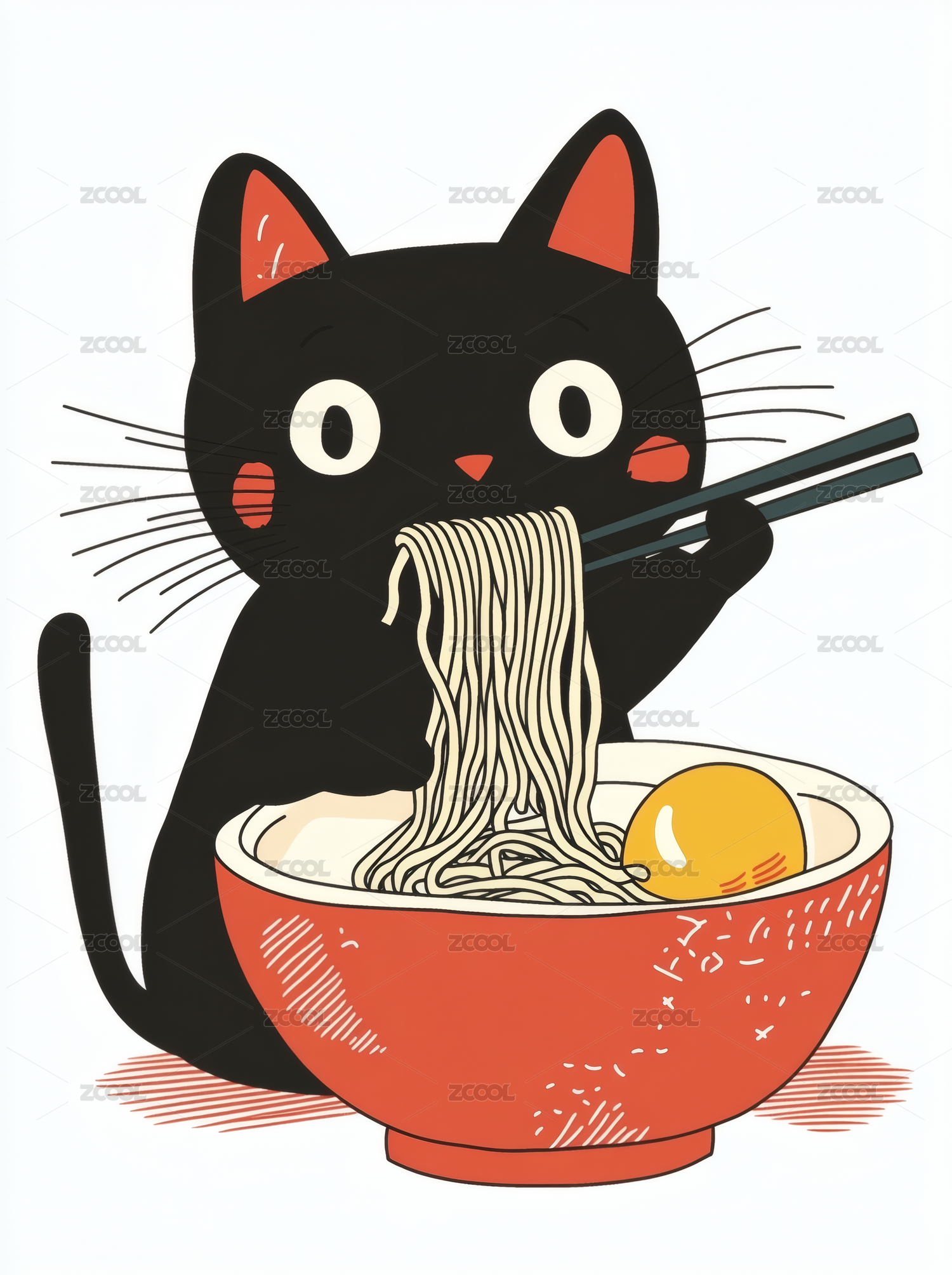 兔年春节吃面节日传统年俗喜庆卡通红色插画