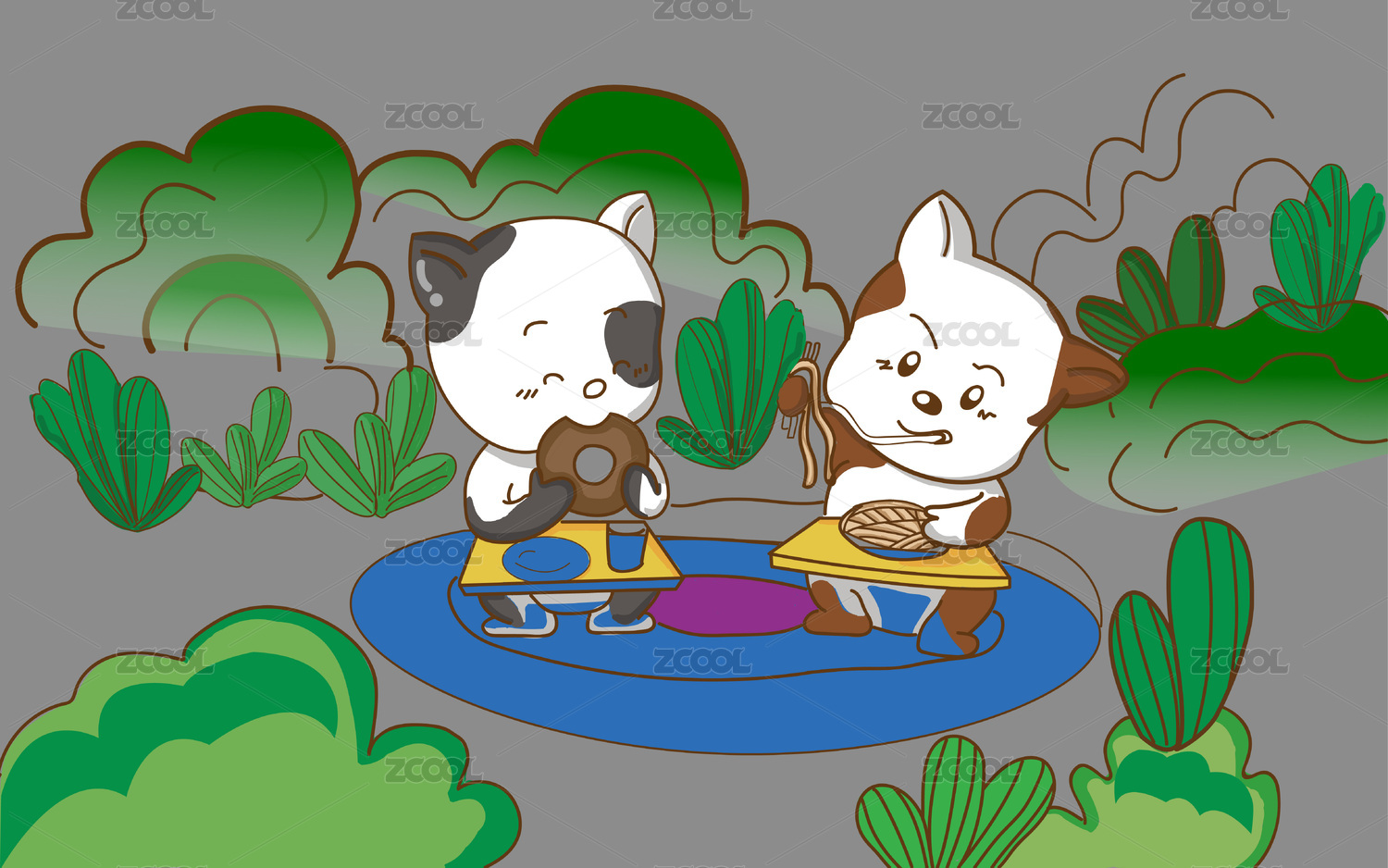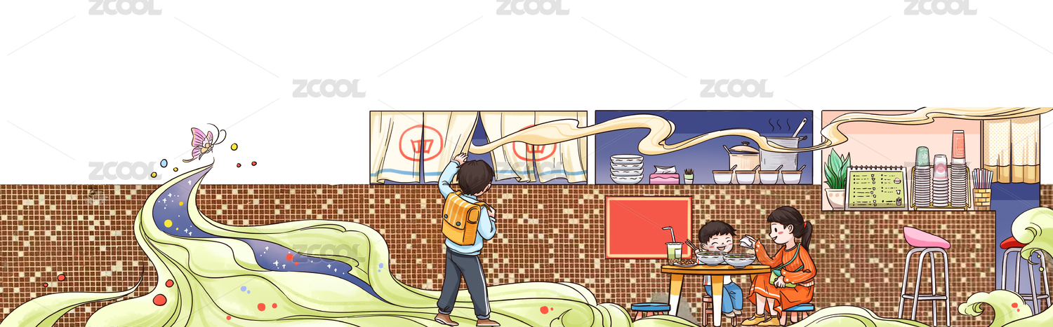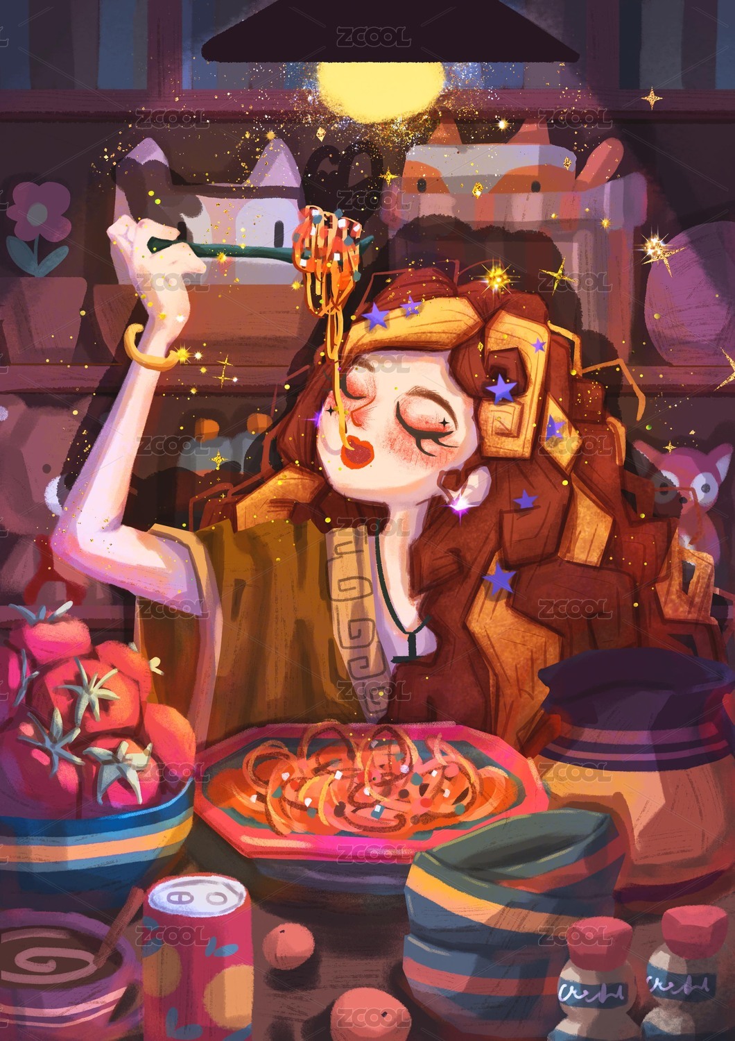 兔年春节吃面节日传统年俗喜庆卡通竖版插画