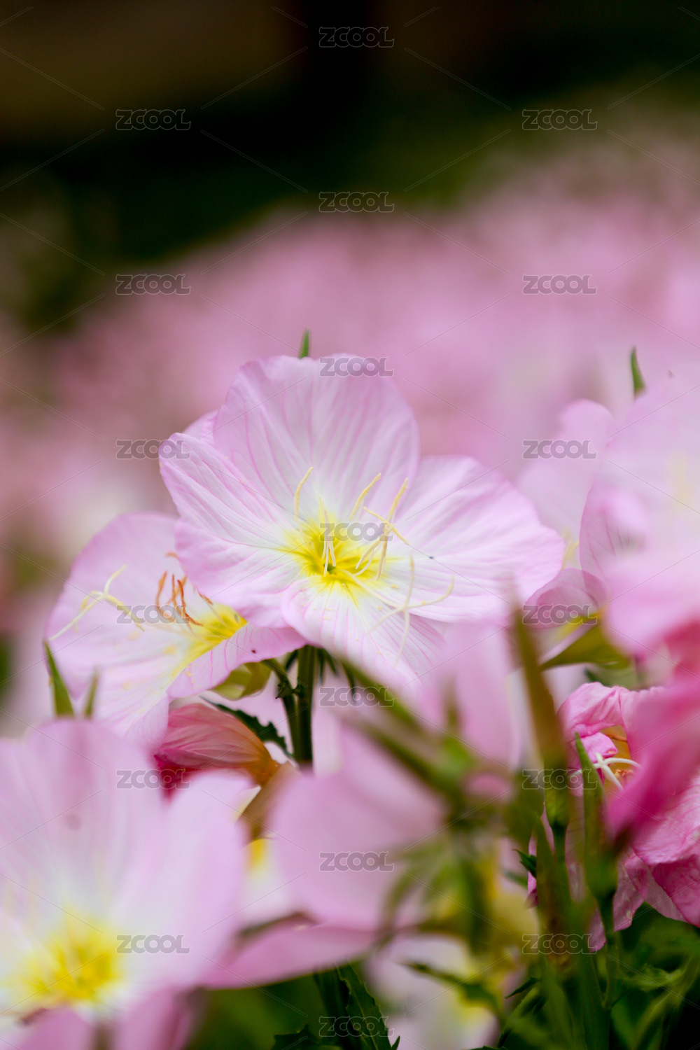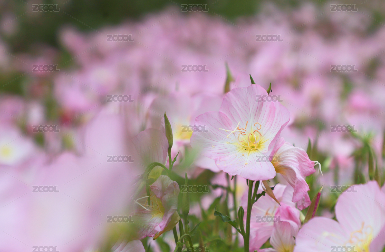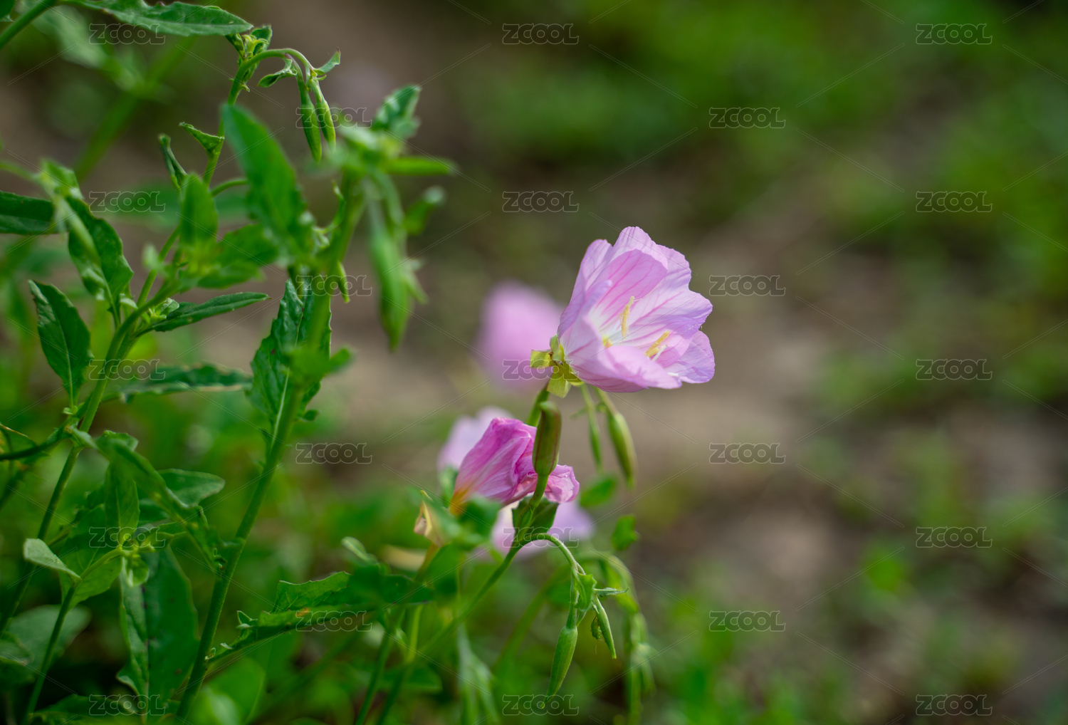 美丽月见草粉红色的花朵