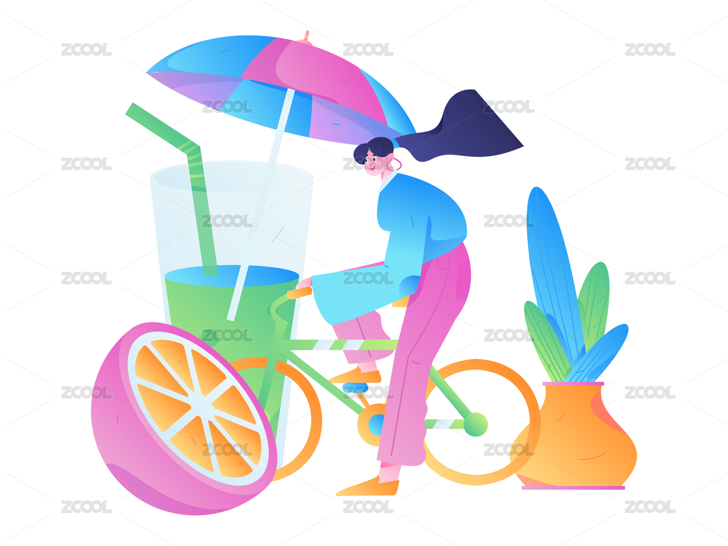24节气大暑人物扁平矢量概念运营手绘插画