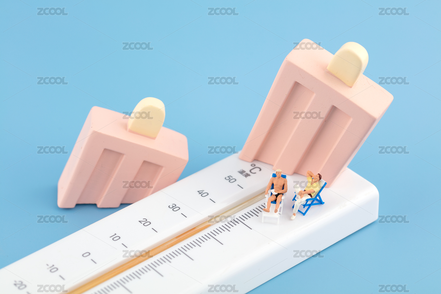 微缩世界高温天气游泳降温雪糕