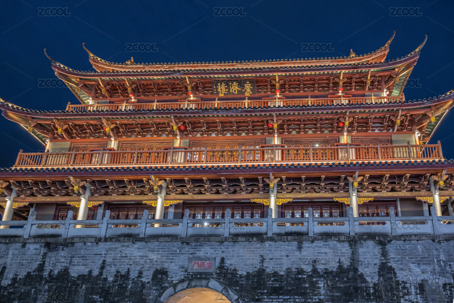 广东省潮州市湘桥区潮州古城广济楼夜景航拍