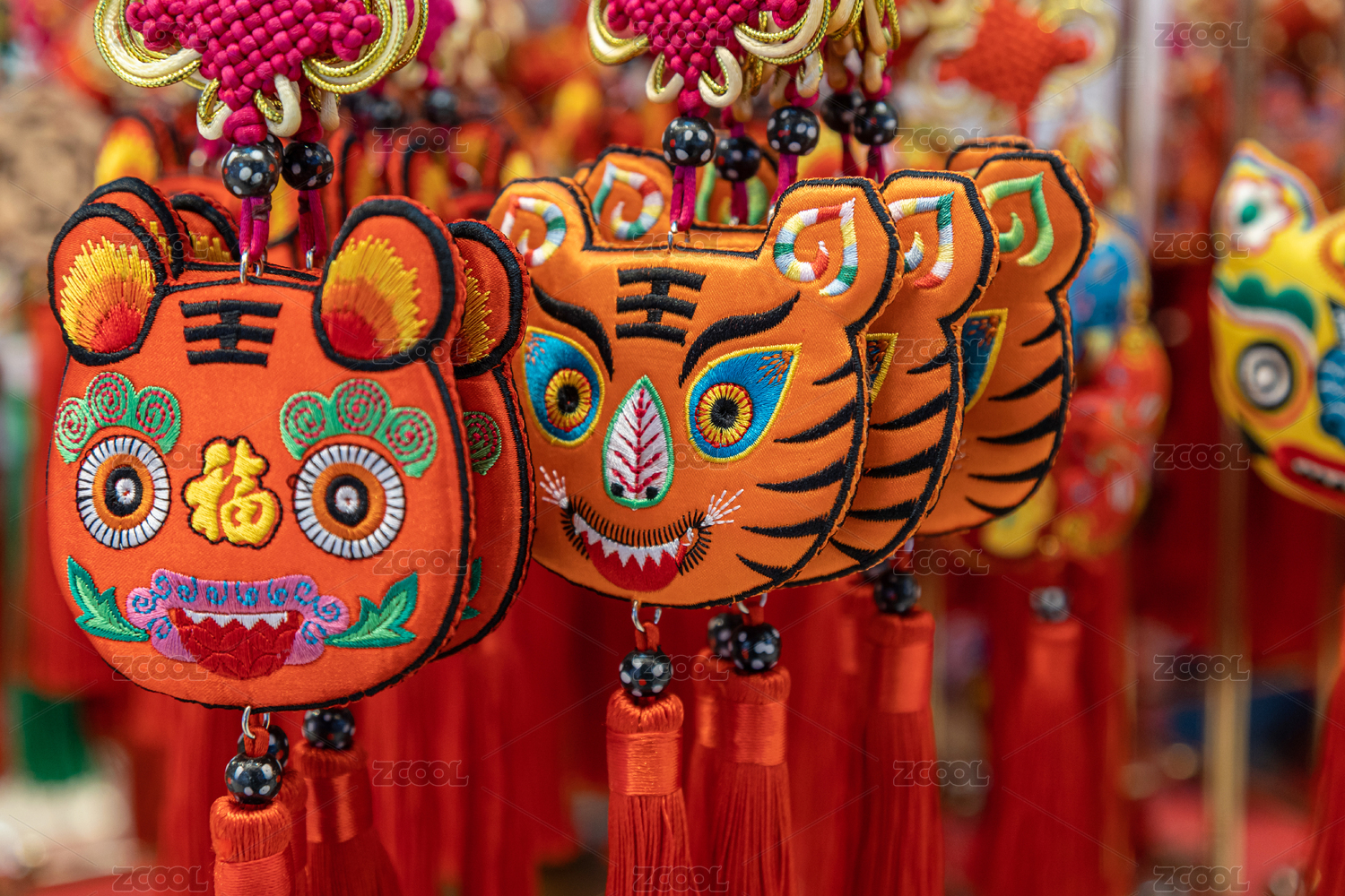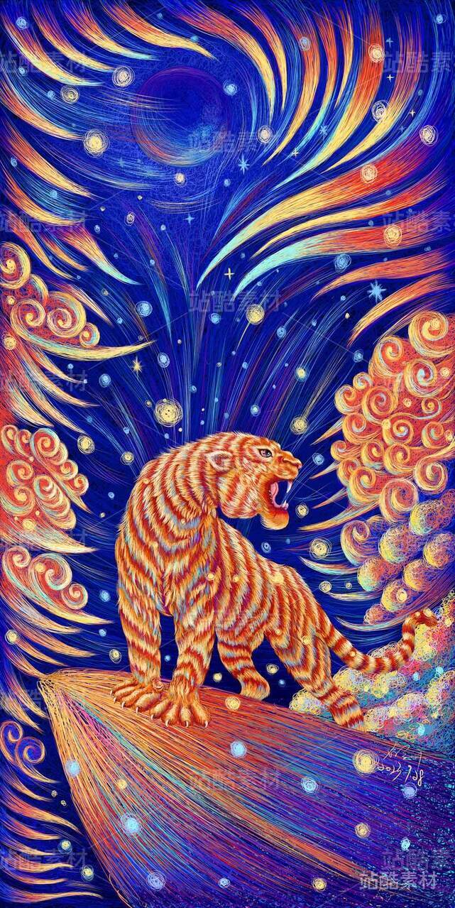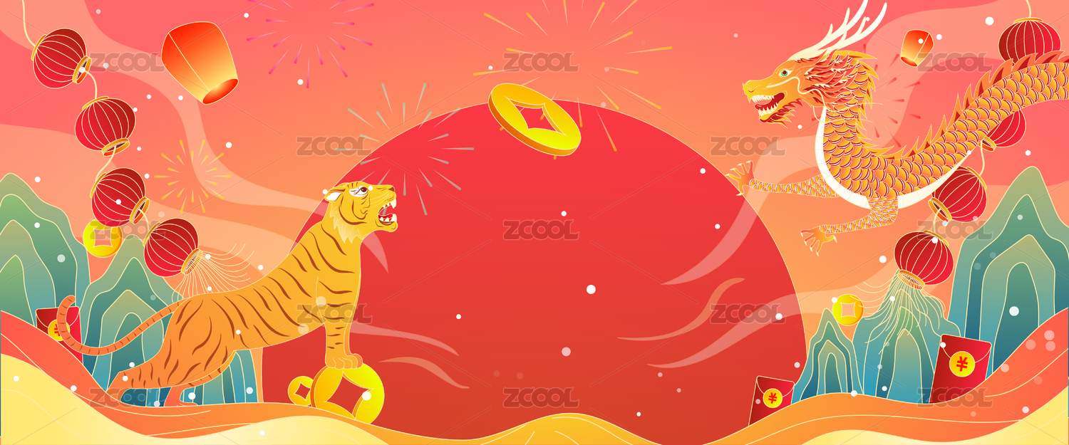十二生肖虎绣球牡丹花梅花铜钱彩色虎年剪纸插画