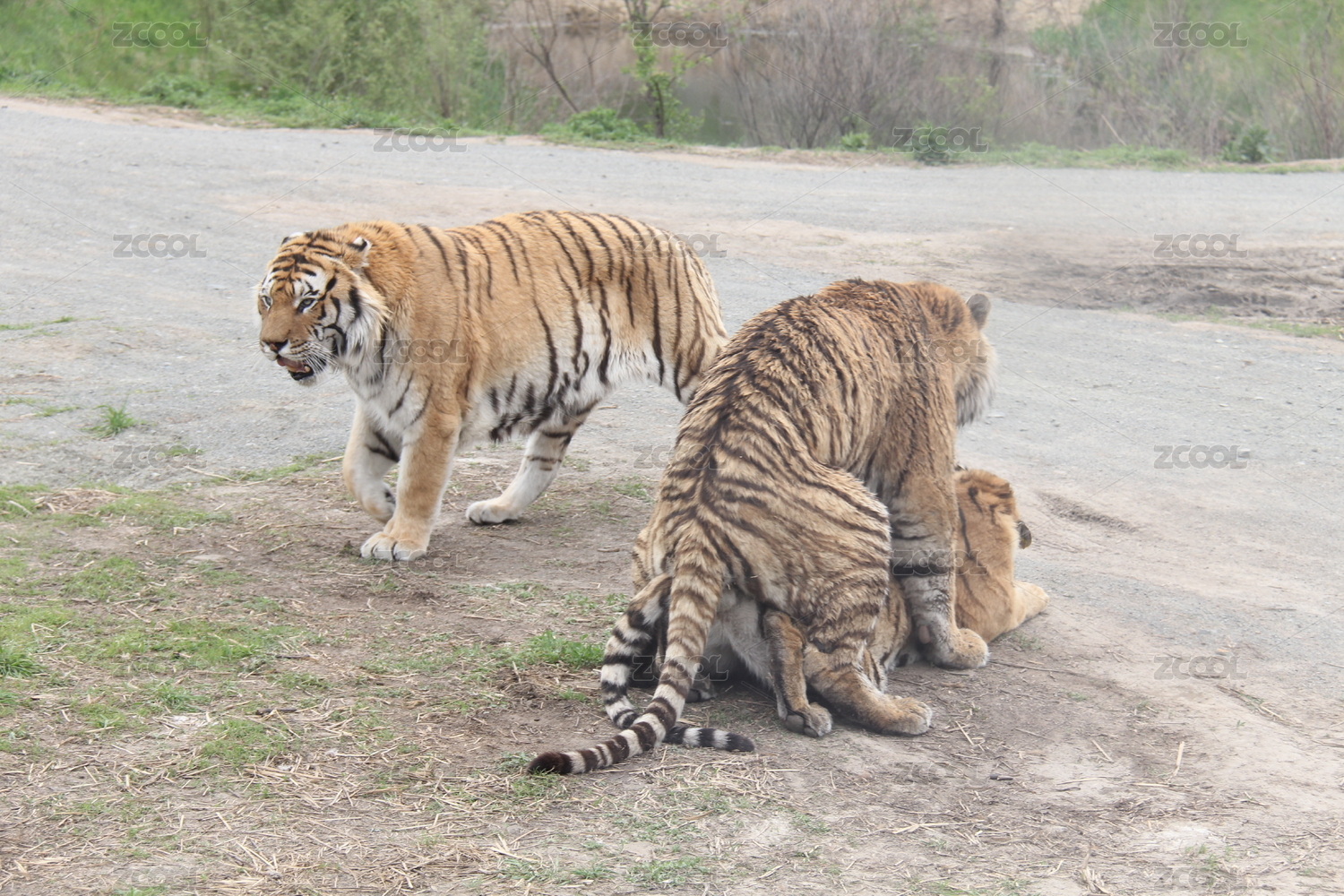 黑龙江省哈尔滨市东北虎园正在交配的东北虎