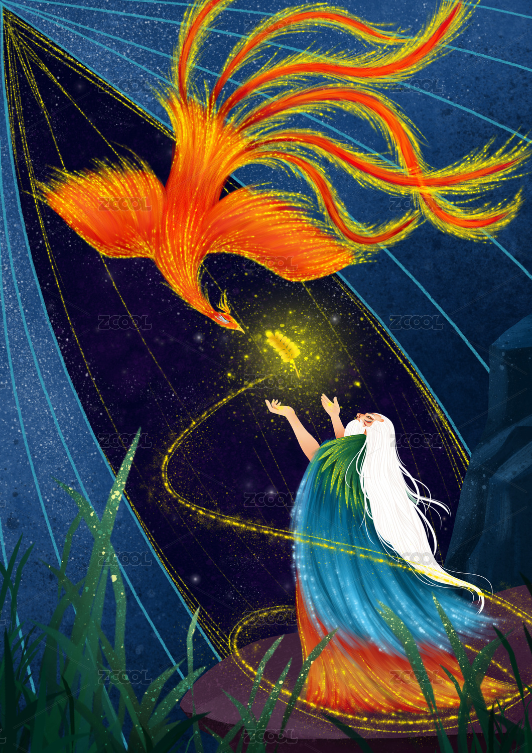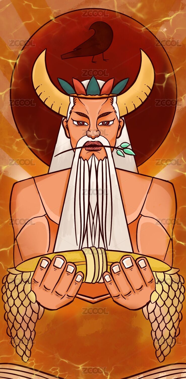 手绘插画-神农