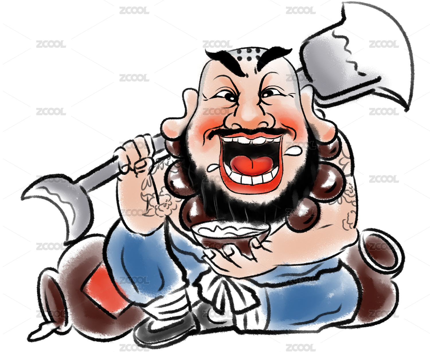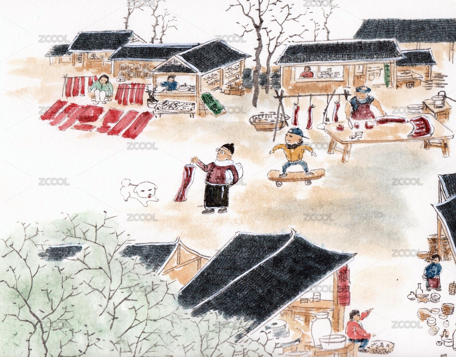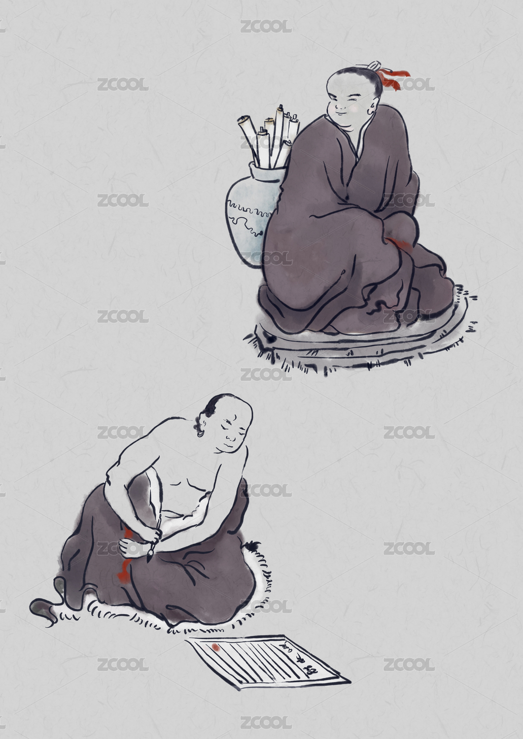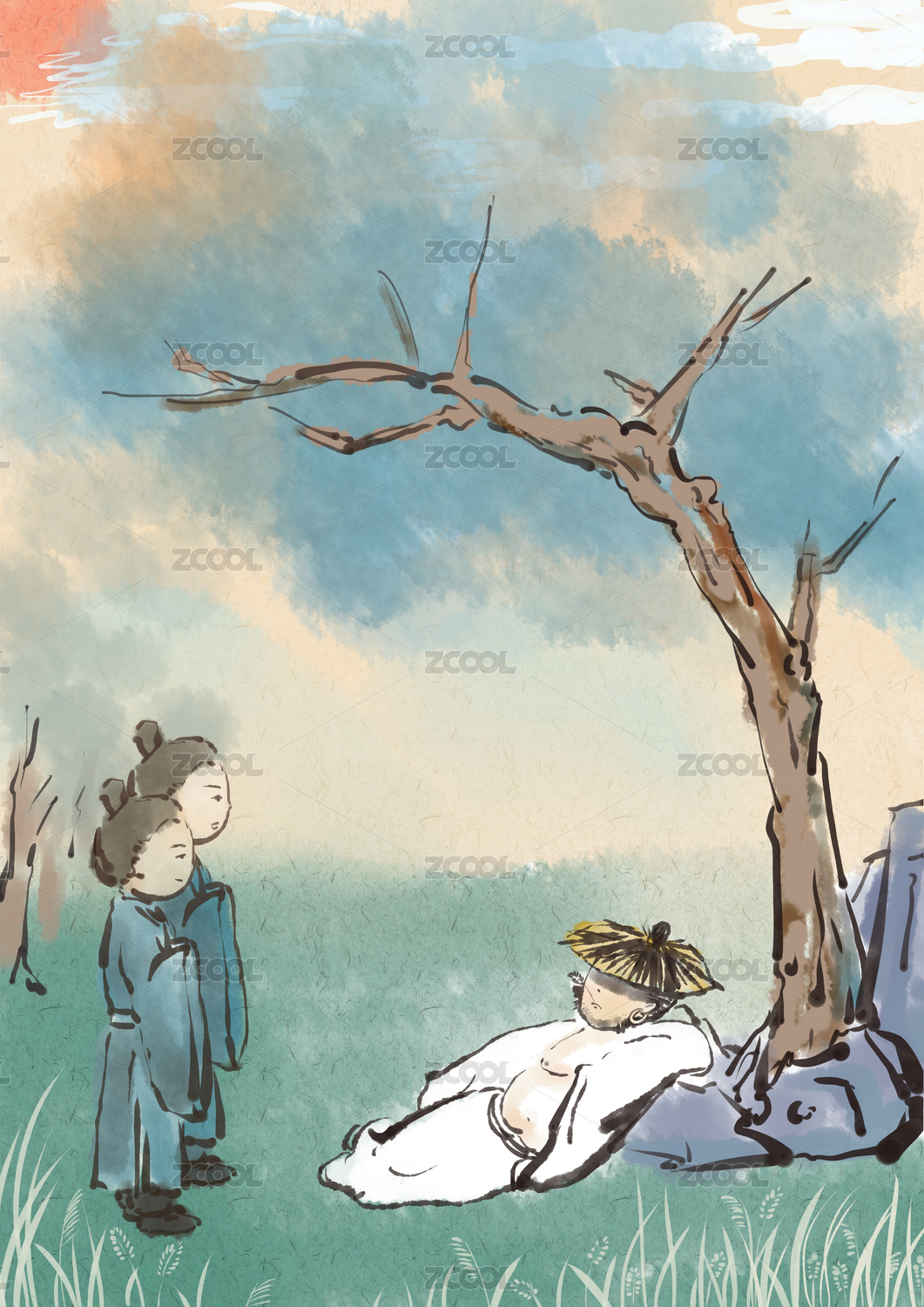 水墨人物创意吃美食小吃美食鸳鸯火锅