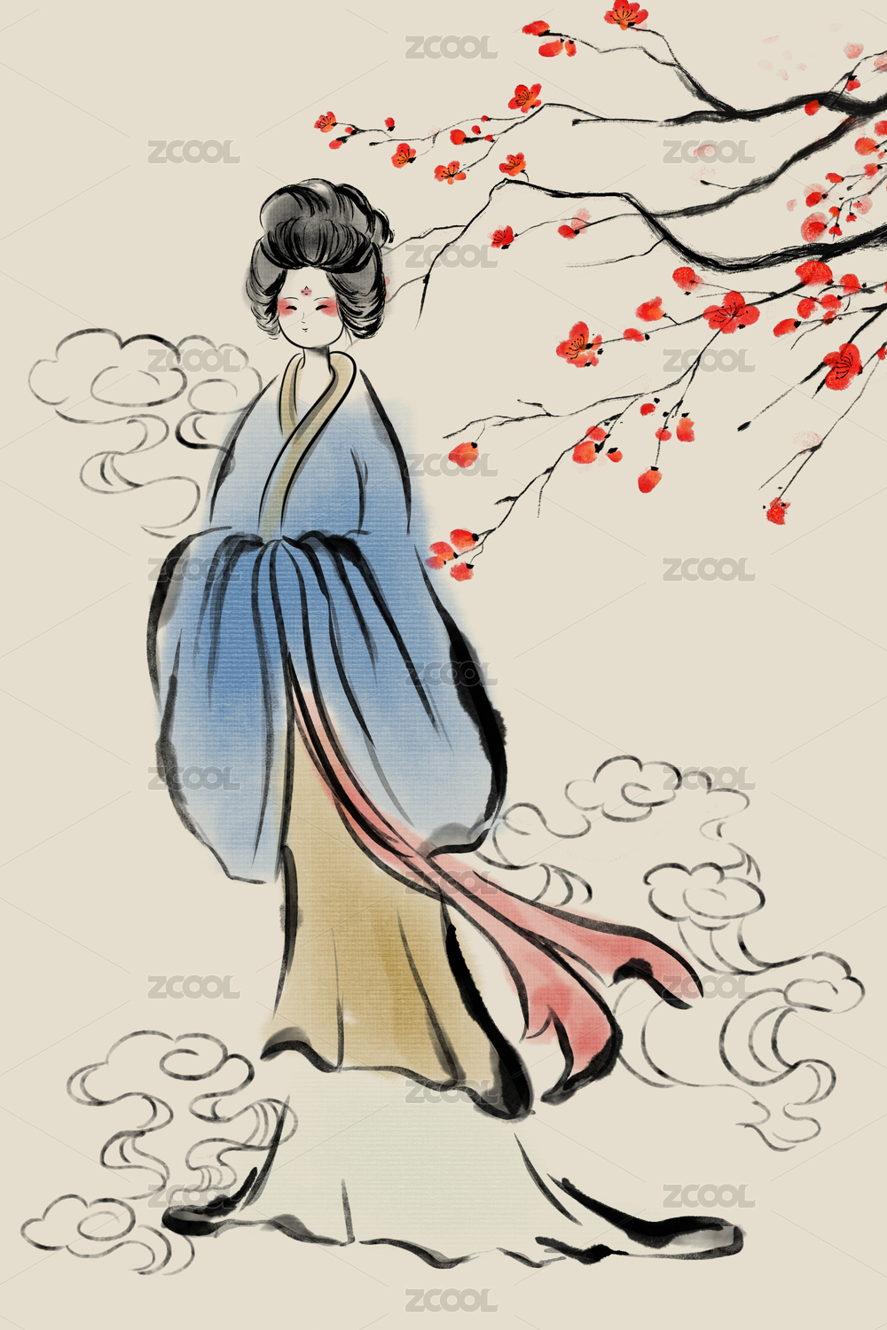 舞蹈海报宣传画水墨画舞蹈人物水墨人物装饰画