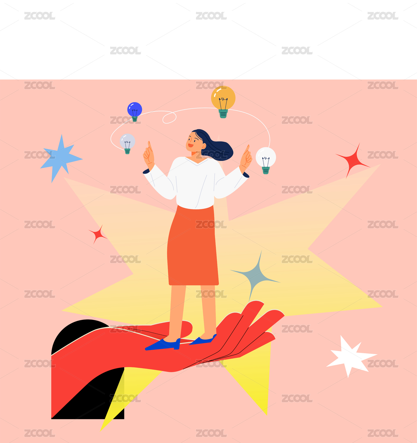 商业商务人士精英白领职场英雄高效的进行团队合作办公工作创意灵感想象力想法灯泡合成概念