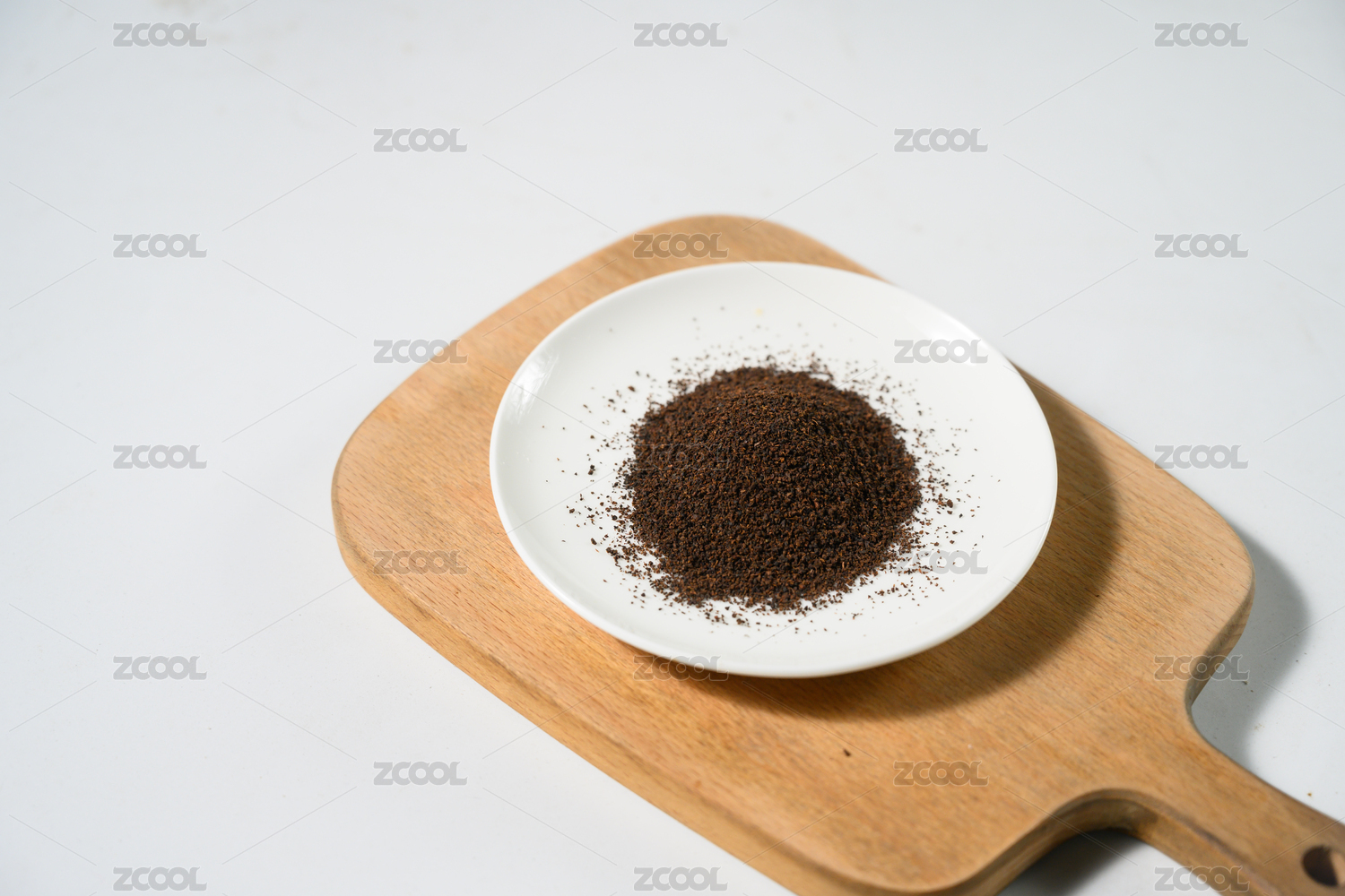 桌面上的盘子里的香气四溢的锡兰红茶茶叶粉