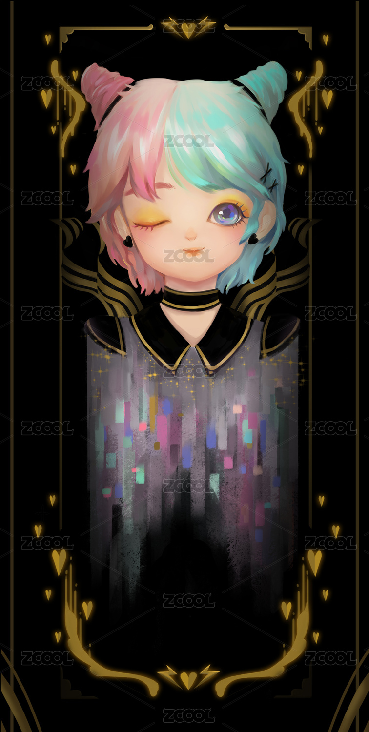 拿着匕首头戴羊头和蓝色羽毛的小姑娘